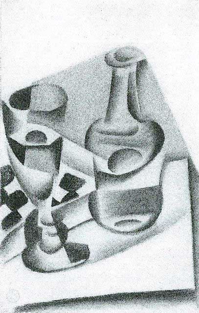 Juan Gris - Carafe, Glass And Chessboard