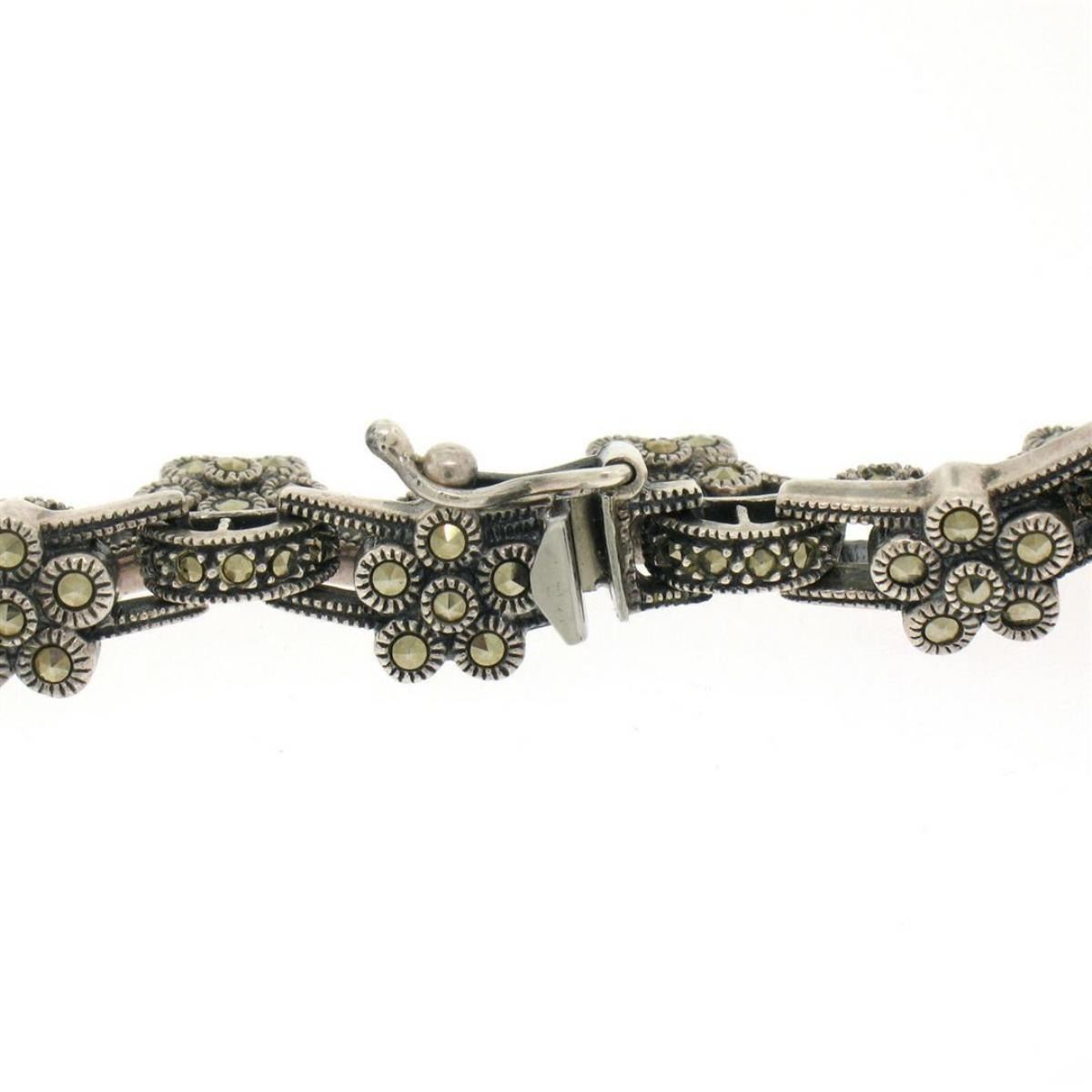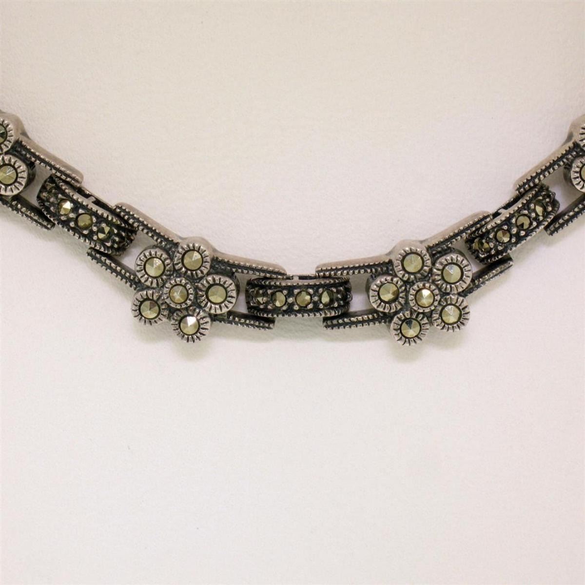 One Judith Jack Sterling Silver Marcasite Cluster Flower 16" Chain Necklace w/ Box. Item Details: Material: Solid .925 Sterling Silver, Weight: 45.43 Grams, Chain Type: Cluster Flower and Bar Link Chain, Chain Length: 16 Inches, Chain Width: 7.87mm, Chain Thickness: 4.54mm, Clasp: Box Clasp w/ Safety Latch, Signature(s): STERLING Condition: Like New w/ Original Pouch and Box!