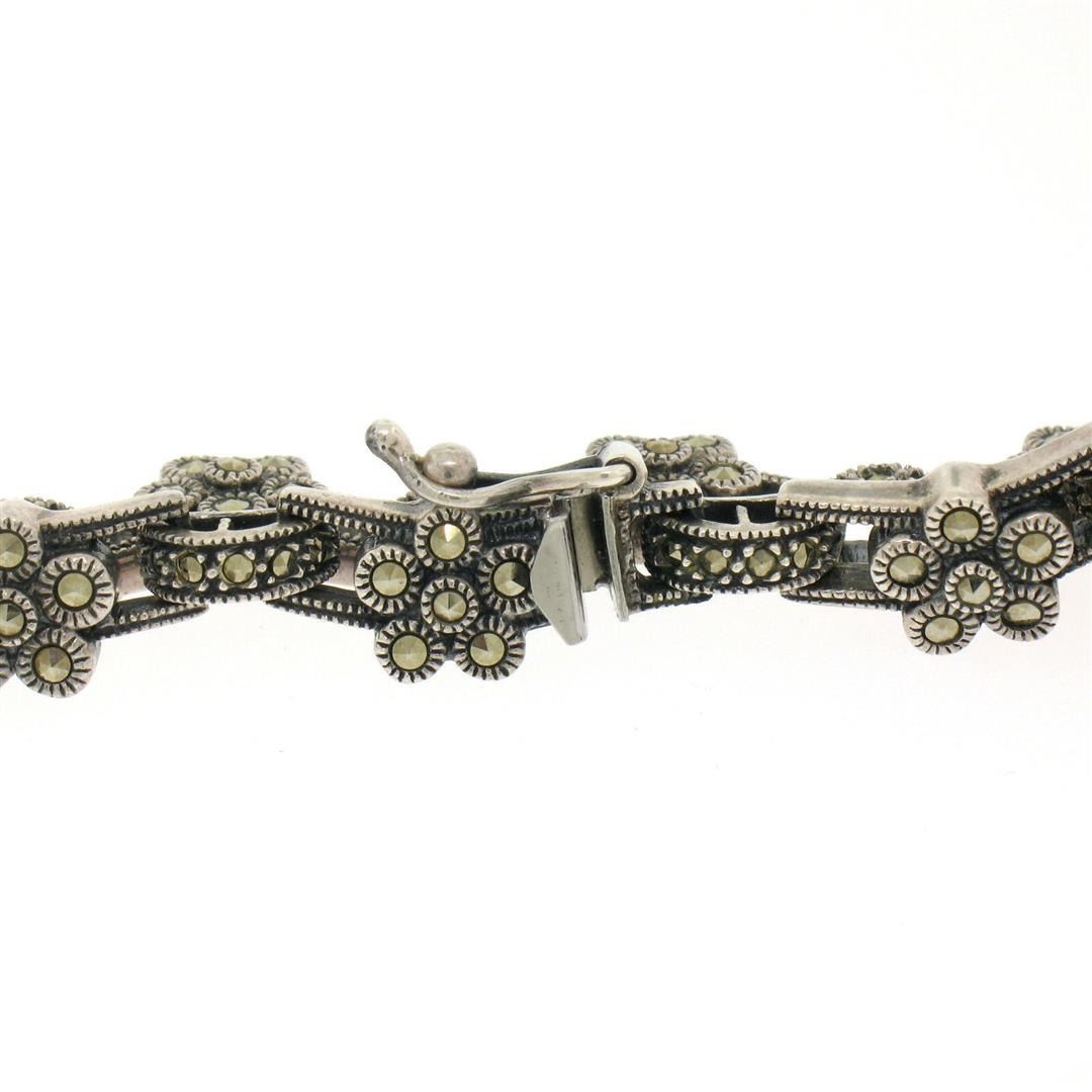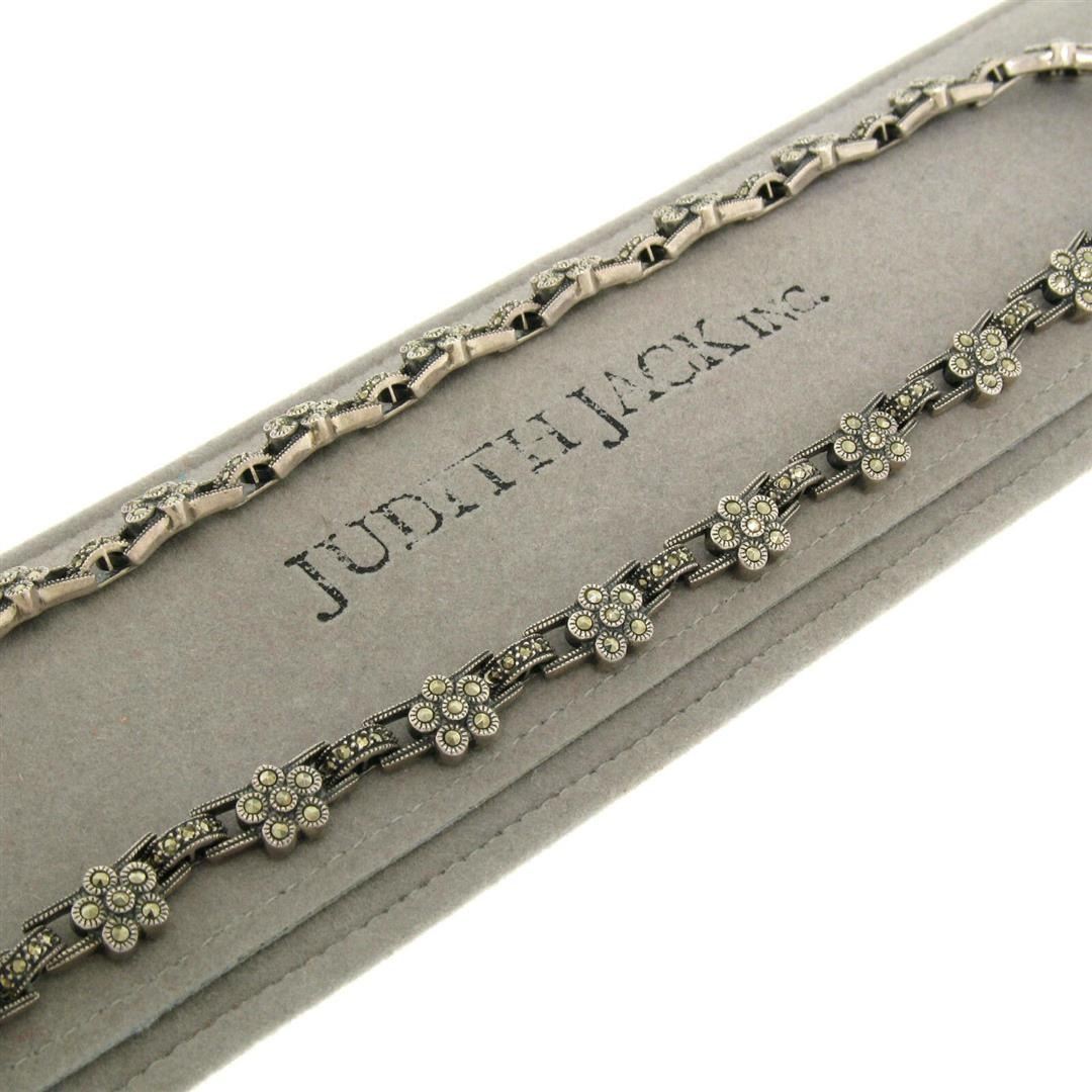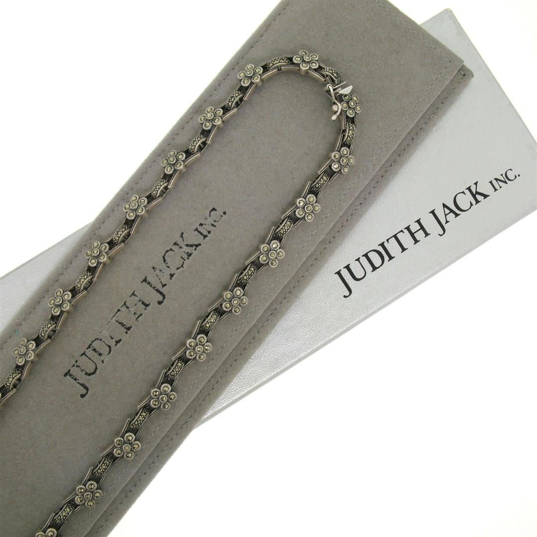 One Judith Jack Sterling Silver Marcasite Cluster Flower 16" Chain Necklace w/ Box. Item Details: Material: Solid .925 Sterling Silver, Weight: 45.43 Grams, Chain Type: Cluster Flower and Bar Link Chain, Chain Length: 16 Inches, Chain Width: 7.87mm, Chain Thickness: 4.54mm, Clasp: Box Clasp w/ Safety Latch, Signature(s): STERLING Condition: Like New w/ Original Pouch and Box!