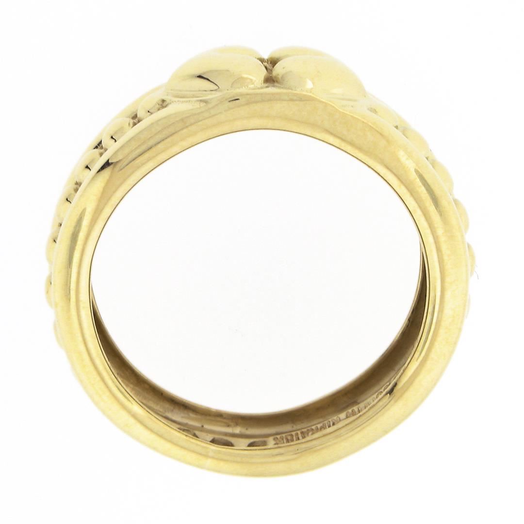 A solid 18k yellow gold ring by Judith Ripka. The ring is size 8.0, weighs a total of 7.28 grams, and measures 6.5mm wide.