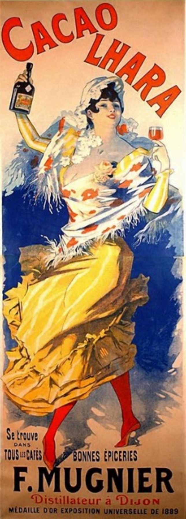 Artist: Jules Cheret - Title: F. Mugnier Cacao Lhara - Medium: Fine Art Giclee on Canvas - Image Size: Approximately 32 inches x 11.5 inches - Unframed on Unstretched Canvas - Biography: Jules Chéret (French, 1836-1932) was a renowned painter and lithographer. Chéret was born in Paris, France, and his family was considered poor, though most of the family members had artistic leanings. - Chéret was instrumental in the emergence of printers and poster designers in the late 1890s. He created the Maîtres de l'Affiche collection in 1895.This was a collection of reproductions from 97 Parisian artists, and the work inspired different artists, including Charles Gesmar. Chéret retired to Nice, France, when he was an old man. The French government awarded him the Légion d'honneur in 1890. - Chéret exhibited his work in different institutions, including the Louvre and the Salon, both in Paris, France. Chéret's works are found in various institutions around the world, including the National Museum of Modern Art, Tokyo, Japan; the Folkwang Museum, Essen, Germany; and The Museum of Modern Art, New York, NY. Chéret died in Nice. -
