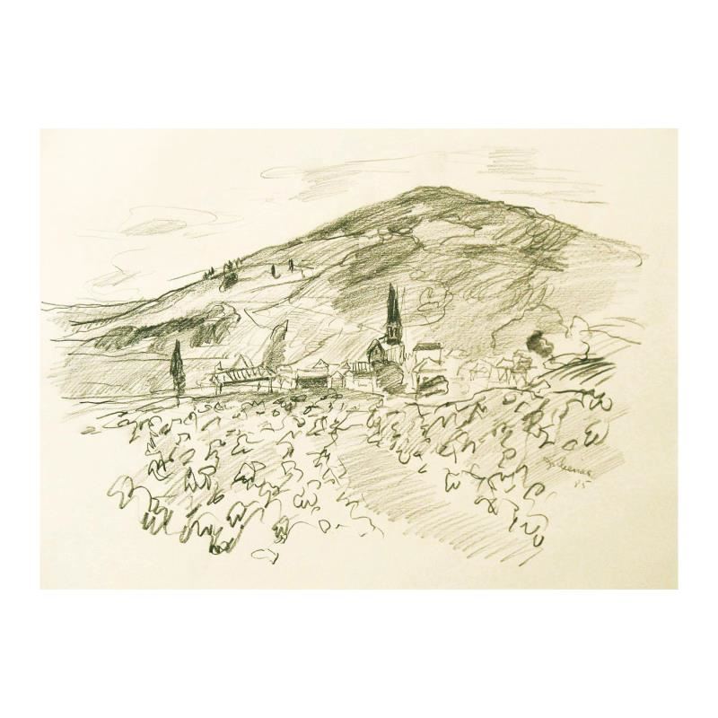 "Julienas in Beaujolais, France" is an original Pencil on Paper by Wayne Ensrud. The piece is hand signed by the artist and comes with a Certificate of Authenticity. Measures approximately 15" x 18".