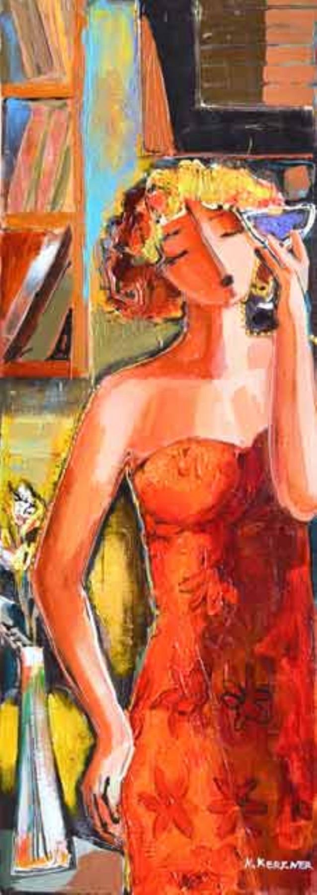 Artist: Michael Kerzner - Title: Untitled - Medium: Original Acrylic on Canvas - Signature: This one-of-a-kind work is hand-signed by the artist at the bottom of the image - Image Size: Approximately 31 inches x 11.25 inches - Unframed on Unstretched