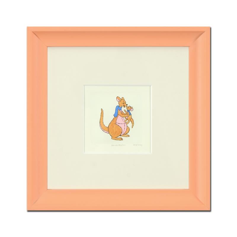 "Kanga" is a limited edition etching on paper with hand-tinted coloring from Disney, numbered out of 500. This piece comes framed. Measures approx. 9" x 9" (with frame), 2" x 2" (image).