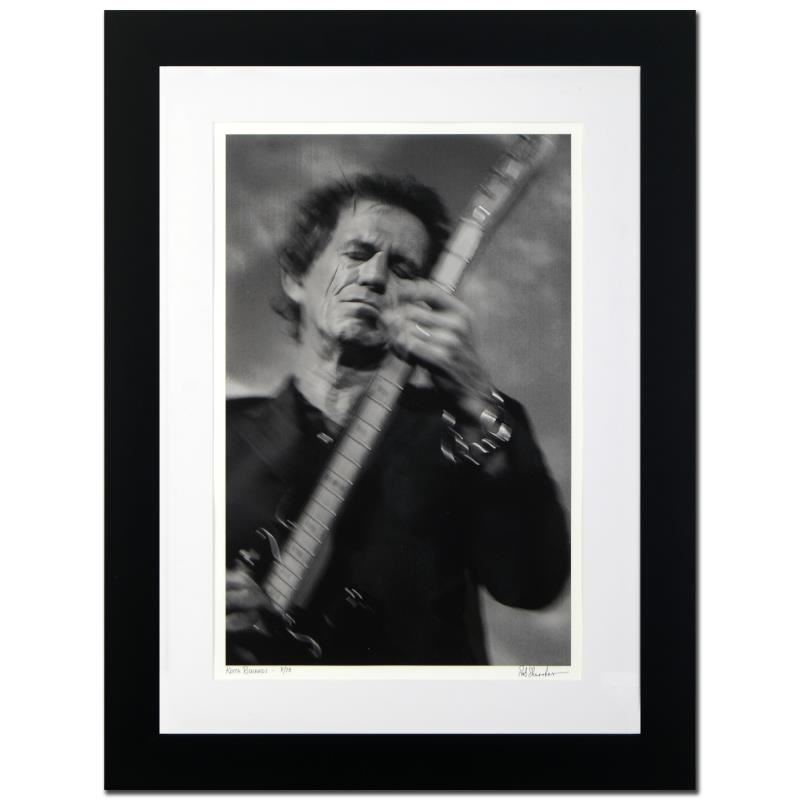 "Keith Richards" is a limited edition giclee on paper, numbered and hand signed by acclaimed music industry photographer Rob Shanahan. This piece comes custom framed. Includes Certificate of Authenticity. Measures approx. 25" x 32" (with frame), 14" x 22" (image).