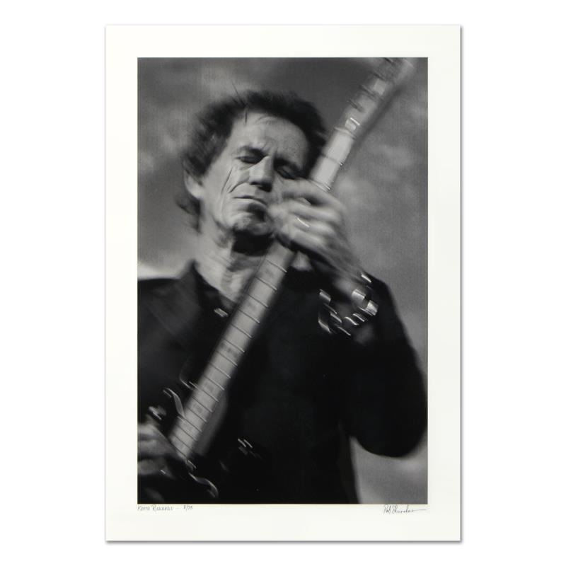 "Keith Richards" is a limited edition giclee on paper, numbered and hand signed by acclaimed music industry photographer Rob Shanahan. Includes Certificate of Authenticity. Measures approximately 14" x 22" (image).