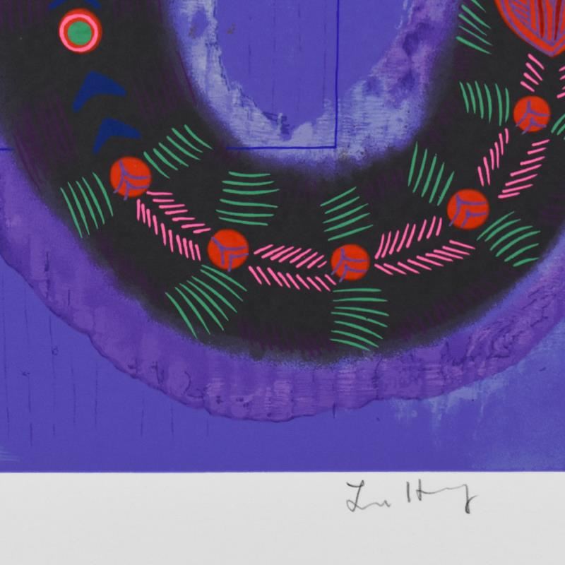 "Kitty Camp Romance (White)" is a limited edition serigraph on paper by Lu Hong, numbered and hand signed by the artist. Includes Letter of Authenticity. Measures approx. 24" x 24.5" (with border), 20" x 20" (image).