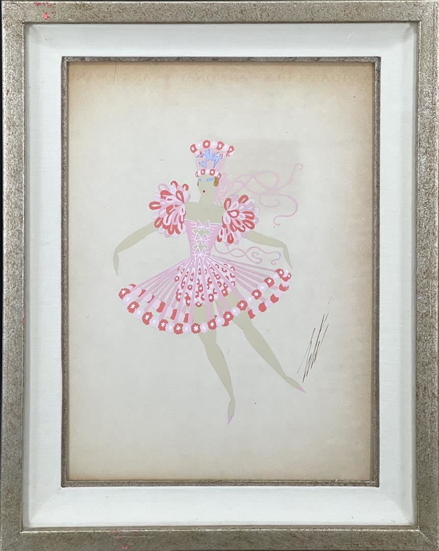 LES GIRLS by ERTE. Original One-of-a-Kind Hand Signed Gouache Framed. In line w age. Dimensions: 14 x 10. Good Condition.