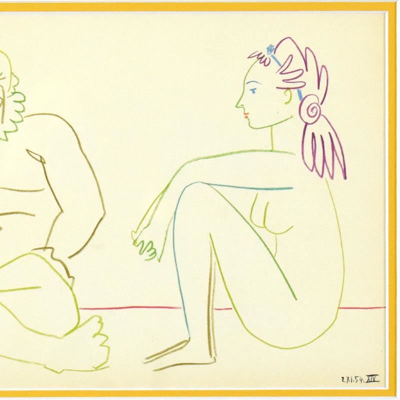 "La Comedie Humaine 27.1.54.XV" is a lithograph on paper by Pablo Picasso (1881-1973). This piece comes framed. Includes Letter of Authenticity. Measures approx. 23" x 20" (frame), 12.5" x 9" (image).