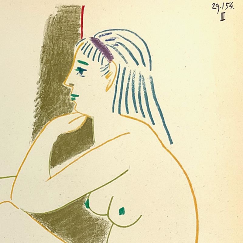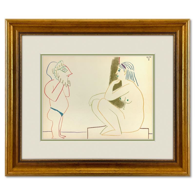 "La Comedie Humaine 29.1.54-III" is a vintage lithograph on paper by Pablo Picasso (1881-1973). This piece comes framed. Includes Letter of Authenticity. Measures approx. 18" x 21" (frame), 10" x 13" (image).