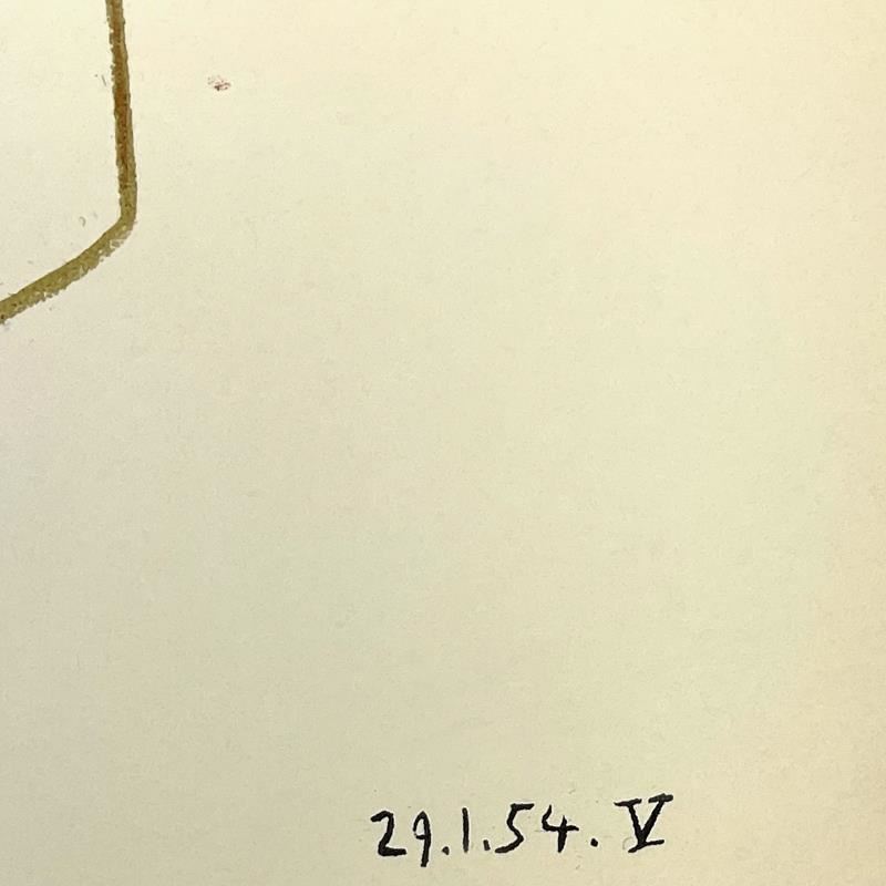 "La Comedie Humaine 29.1.54-V" is a vintage lithograph on paper by Pablo Picasso (1881-1973). This piece comes framed. Includes Letter of Authenticity. Measures approx. 18" x 21" (frame), 10" x 13" (image). This item requires special handling and may have a longer than usual turnaround.