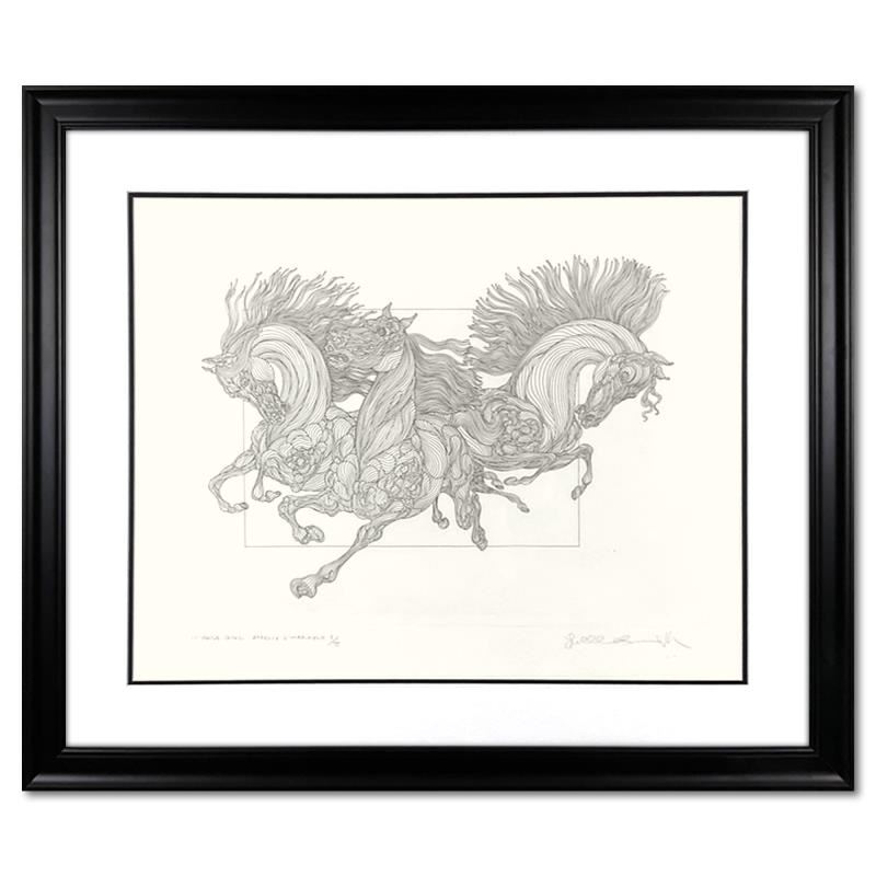 "La Horla" is a limited edition etching on paper by Guillaume Azoulay, numbered I/III and hand signed by the artist. This piece comes custom framed. Includes Letter of Authenticity. Measures approx. 34" x 29" (frame), 20" x 16" (image).