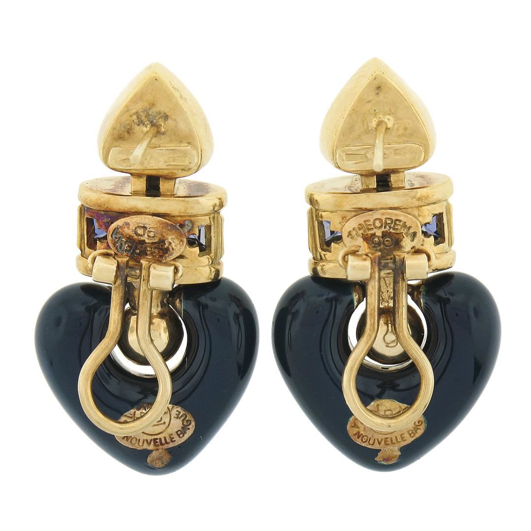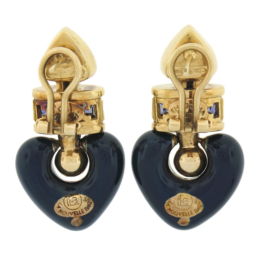 La Nouvelle Bague 18k Gold 1 ctw Tanzanite Blue Enamel Heart Drop Dangle Earring