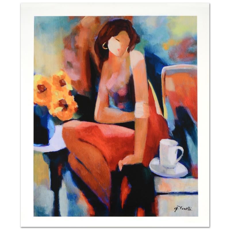 "Lady" is a limited edition giclee on canvas by Yunessi Gholam, numbered inverso and hand signed by the artist! Includes Certificate of Authenticity! Measures approx. 23.5" x 29.5" (image).