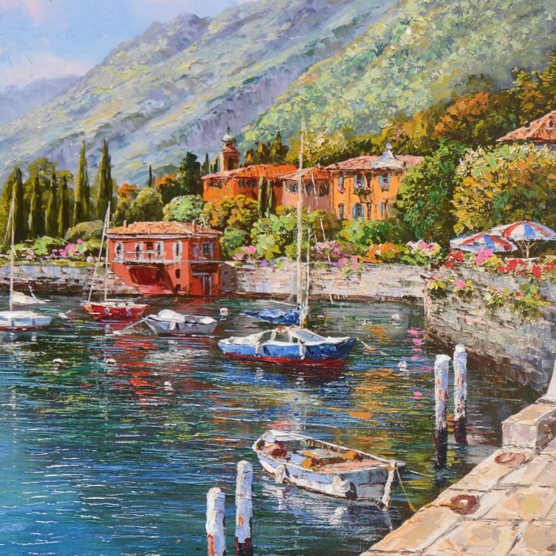 "Lake Como Villa" is a hand embellished limited edition serigraph on canvas by Sam Park, numbered and hand signed by the artist. Includes Certificate of Authenticity. Measures approx. 30" x 24" (image).