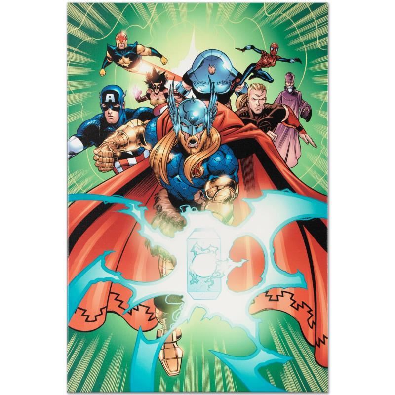 A piece of comic book history, this limited edition, from original art by Patrick Olliffe, depicts classic characters including Thor and Captain America. Best known for his work on the Spider-Man and Spider-Girl franchises, Patrick Olliffe is also a published author and illustrator. "Last Hero Standing #5" is a limited edition giclee on canvas by Patrick Olliffe presented by Marvel Comics! This piece comes gallery wrapped. Includes Certificate of Authenticity! Measures approx. 18" x 27" (image). This item requires special handling and may have a longer than usual turnaround.