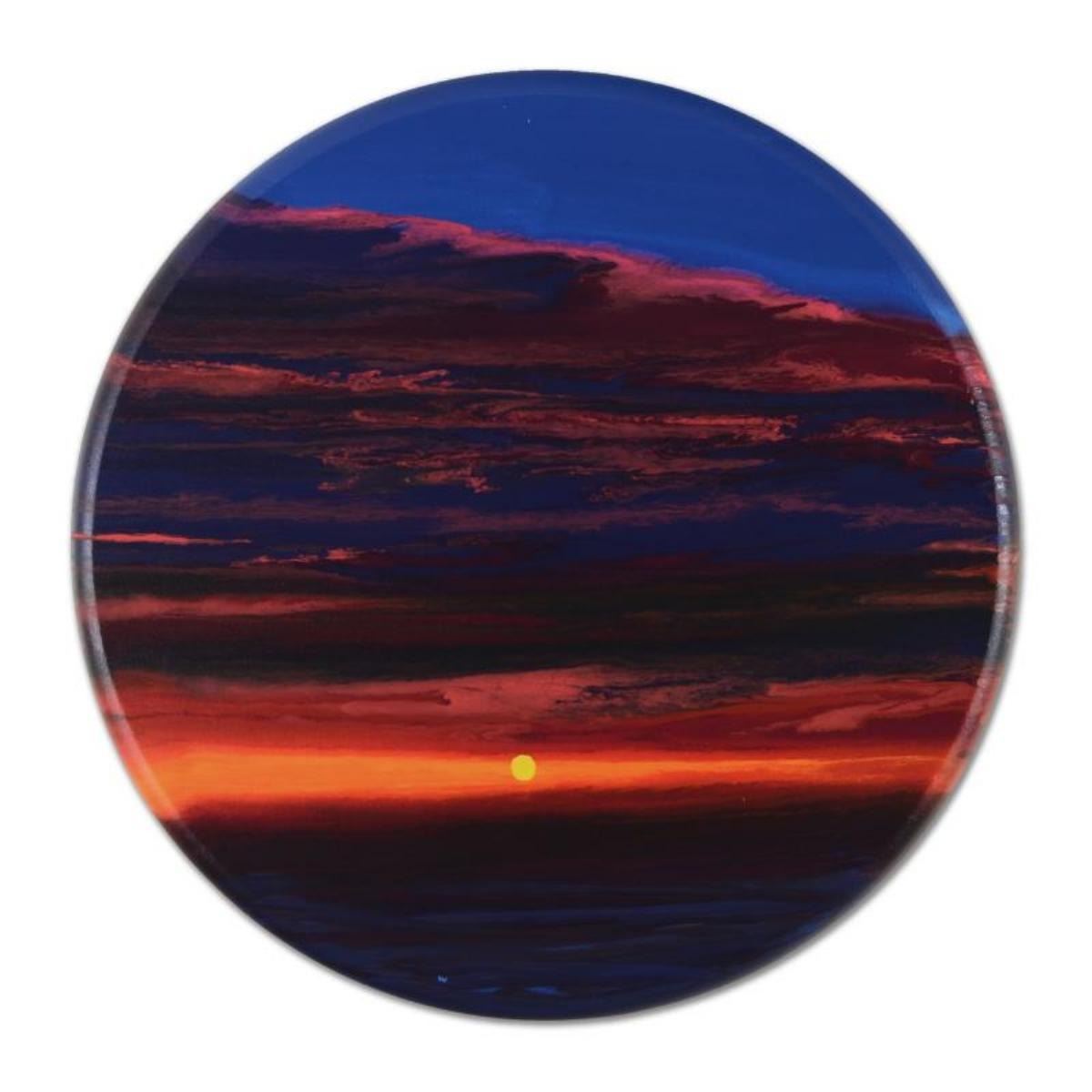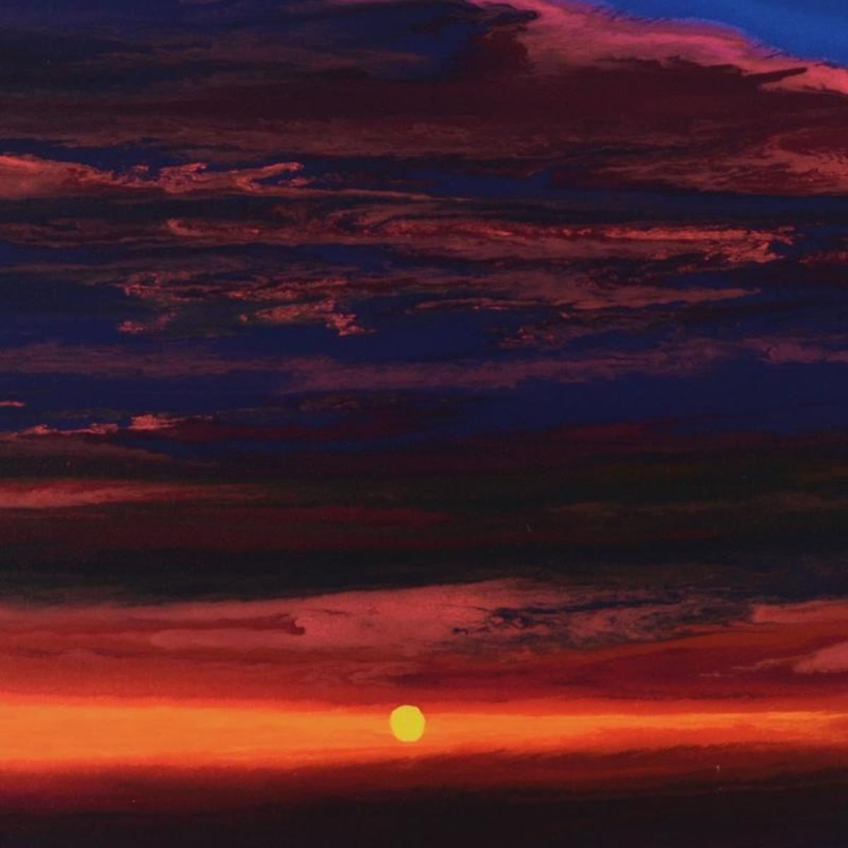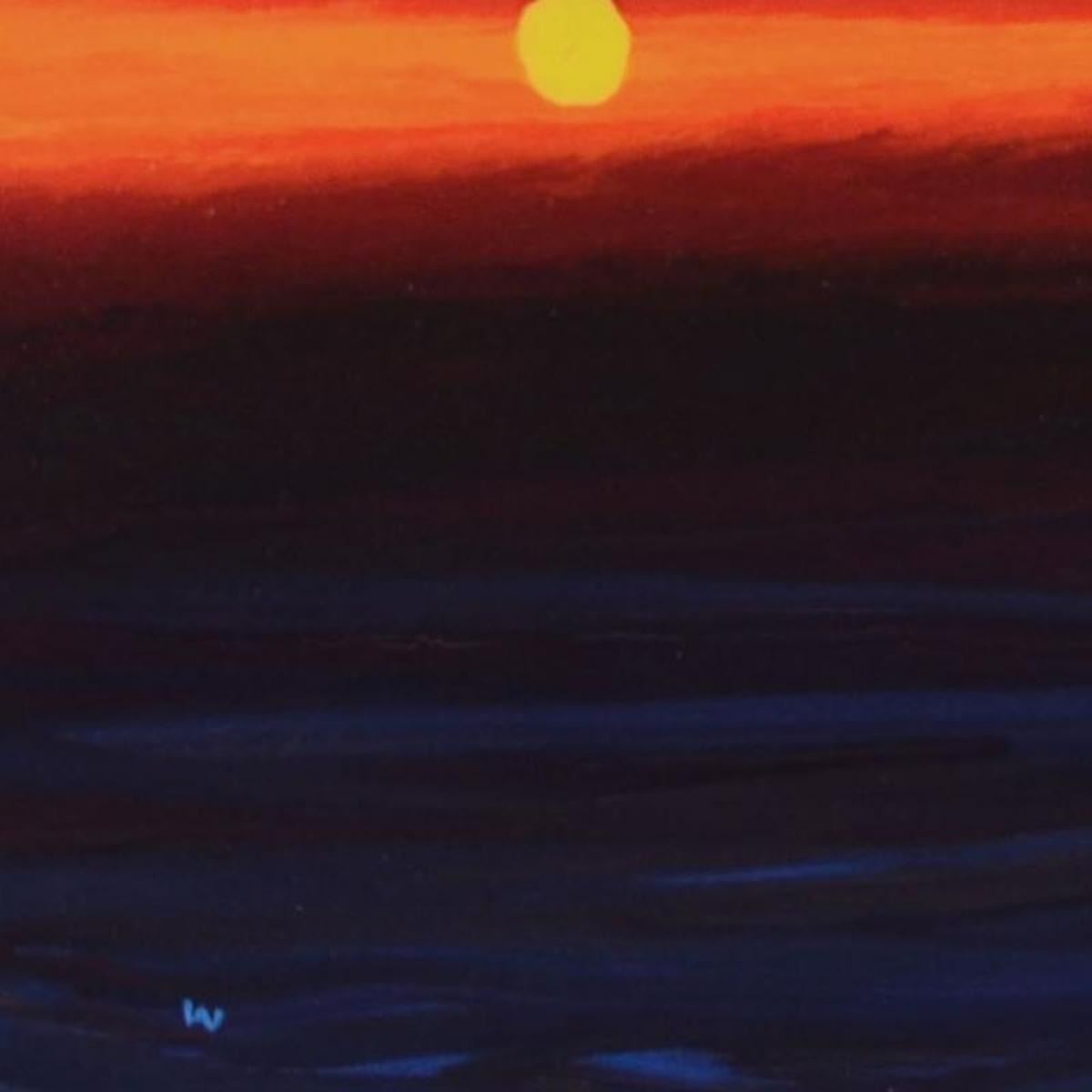 "Last Sunset" is an original oil painting on stretched canvas by Wyland, hand signed by the artist. Includes Certificate of Authenticity. Measures approx. 36" (image-diameter).
