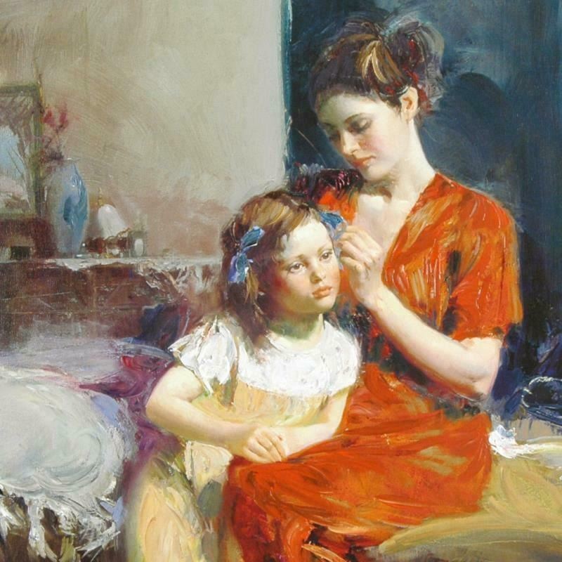 "Last Touch" is a hand embellished limited edition giclee on canvas by Pino (1939-2010), numbered and hand signed. Includes Certificate of Authenticity. Measures approx. 26" x 32" (image). This piece is not stretched.