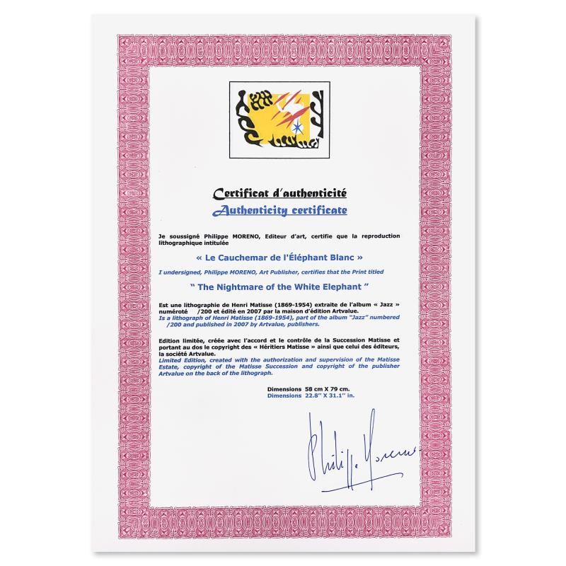 "Monsieur Loyal" is a limited edition lithograph by Henri Matisse (1869-1954). This piece comes from an edition of 200 authorized by the Matisse Estate; the edition number is not on the piece itself but on the certificate. This piece comes custom framed. Includes Certificate of Authenticity. Measures approx. 37" x 29" (frame), 31" x 23" (image).