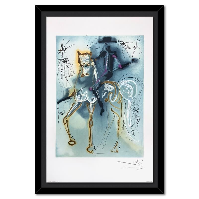 "Le Picador" is a limited edition lithograph by Salvador Dali (1904-1989), bearing the plate signature of the artist. This piece was published by Armand & Georges Israel in 1983 during Dali's lifetime and under his supervision. This piece was printed on Velin D'arches paper in Paris. This work is referenced in The Official Catalog of the Graphic Works of Salvador Dali (Albert Fields). This piece comes custom framed. Includes Certificate of Authenticity. Measures approx. 20" x 28" (frame), 14" x 22" (image).