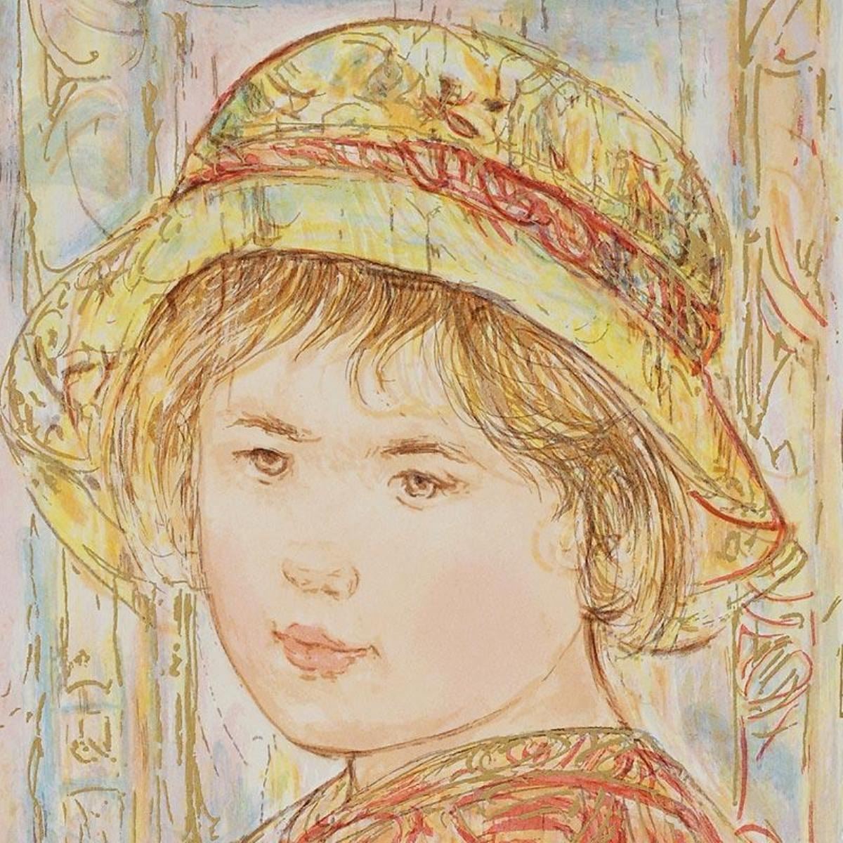 Wild lines and muted colors make Edna Hibel's art stand out in any room. "Lemual" is a limited edition serigraph on paper, numbered and hand signed by Hibel (1917-2014). Includes Certificate of Authenticity! Measures approx. 12" x 14.5" (with border), 9" x 11.5" (image).