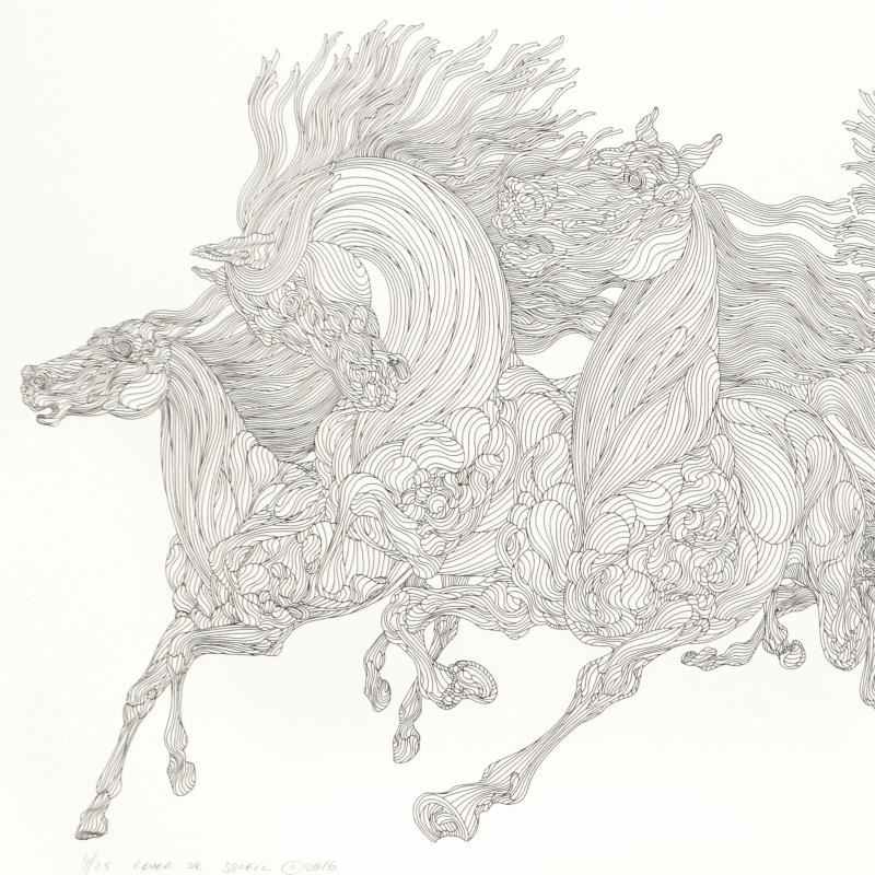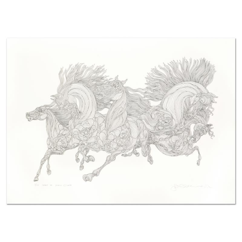 "Lever De Soleil" is a limited edition serigraph on paper by Guillaume Azoulay, numbered and hand signed by the artist. Includes Letter of Authenticity. Measures approx. 38" x 27.5" (border), 32" x 21" (image).