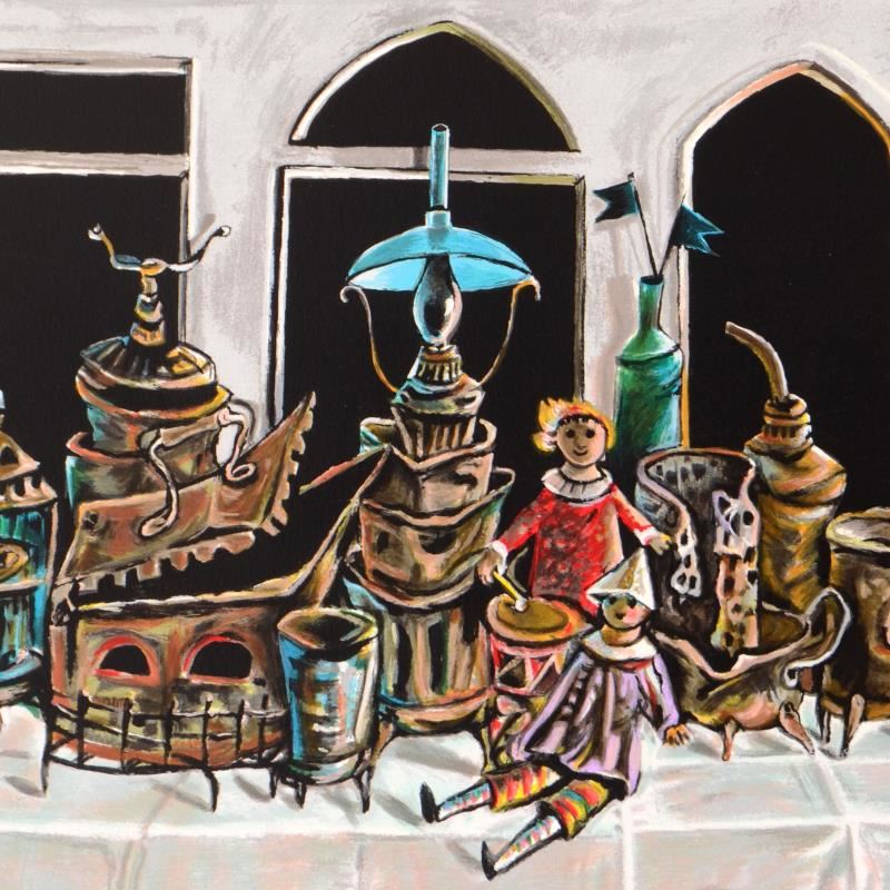 "Lightings" is a limited edition lithograph on paper, numbered hand signed by Yosl Bergner (1920-2017). Includes Certificate of Authenticity. Measures approx. 28.5" x 21" (with border), 25.5" x 18.5" (image).