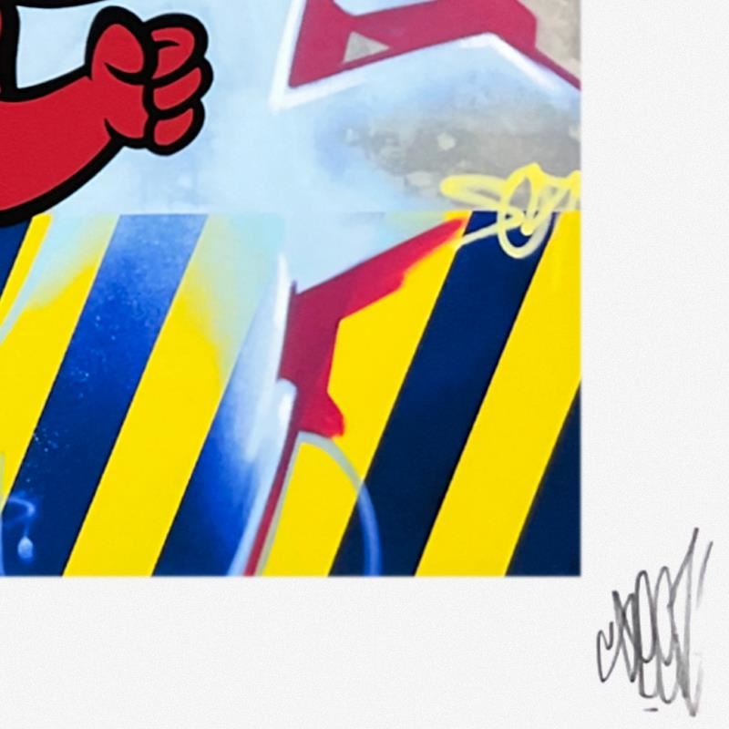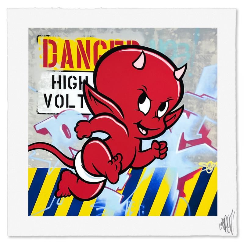 "Lil Devil" is a limited edition giclee by Seen, numbered and hand signed by the artist. Includes Letter of Authenticity. Measures approx. 18" x 18" (border), 15" x 15" (image).