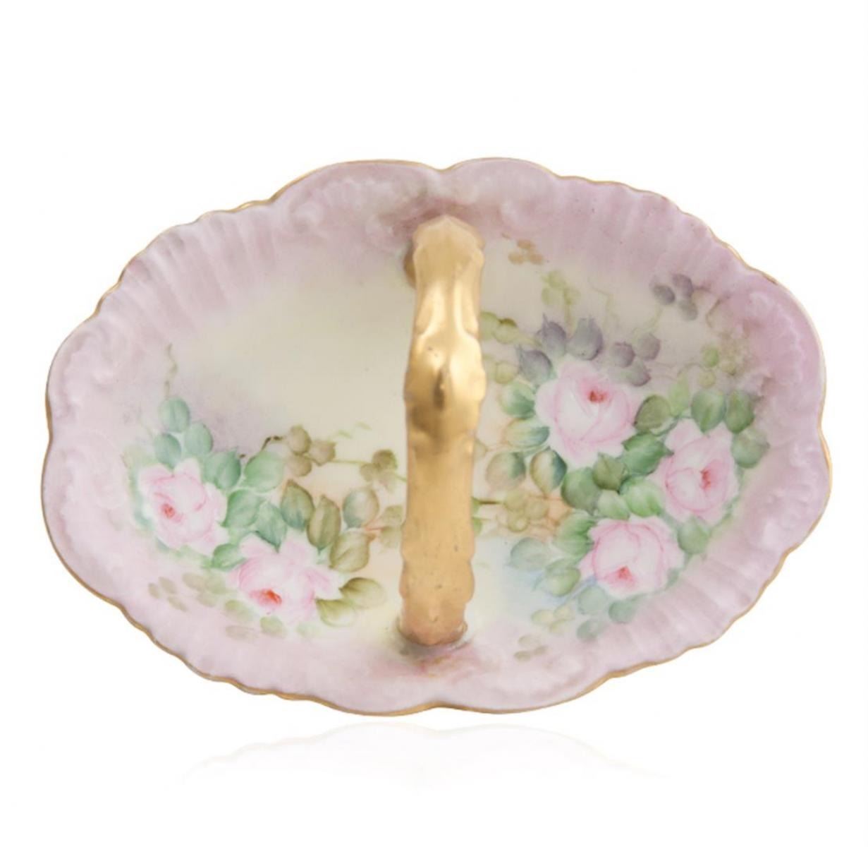Limoges Small Porcelain Basket. Good Condition. One Limoges Basket featuring: pink flower pattern and made of porcelain.
