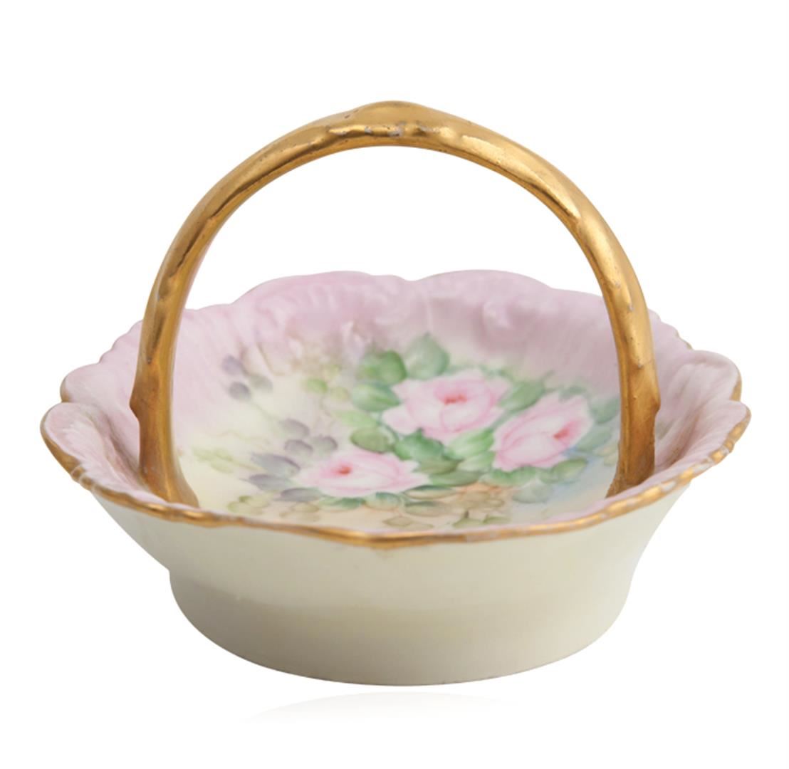 Limoges Small Porcelain Basket. Good Condition. One Limoges Basket featuring: pink flower pattern and made of porcelain.