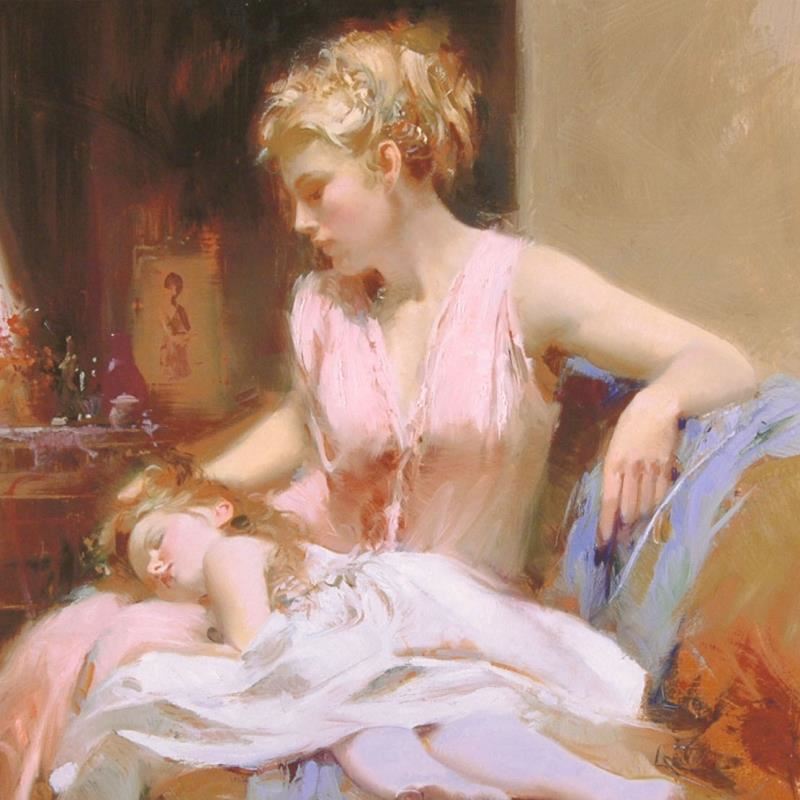 "Long Day" is a limited edition giclee on canvas by Pino (1939-2010), numbered and hand signed by the artist. Includes Certificate of Authenticity. Measures approx. 12" x 12" (image).