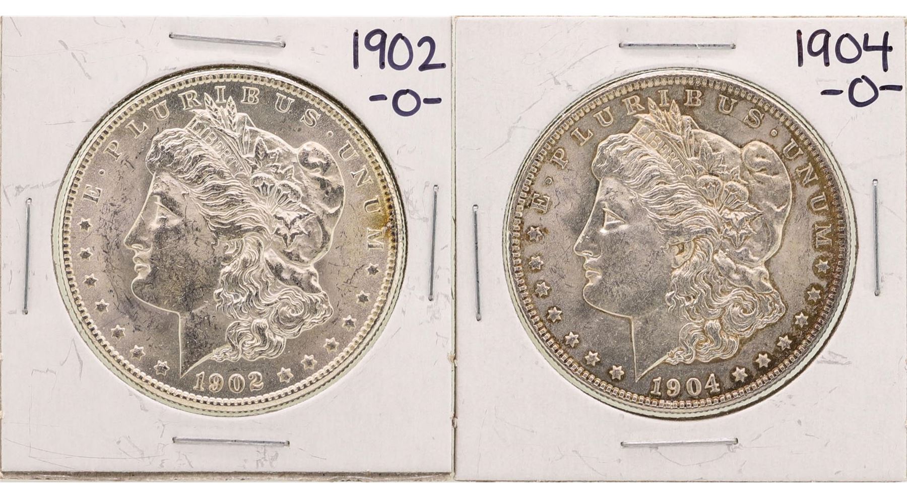 One Lot of 1902-O & 1904-O $1 Morgan Silver Dollar Coins.