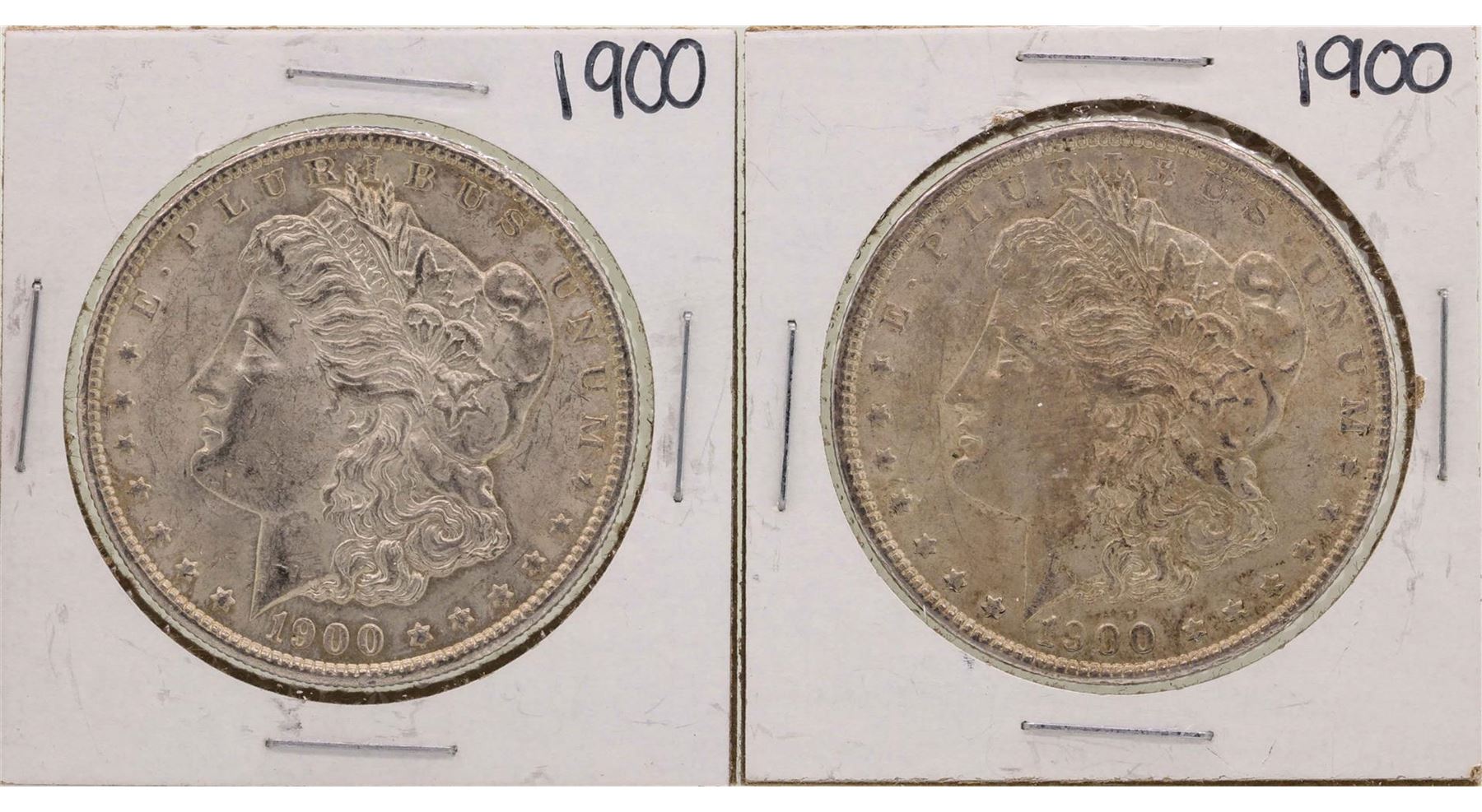 One Lot of (2) 1900 $1 Morgan Silver Dollar Coins.