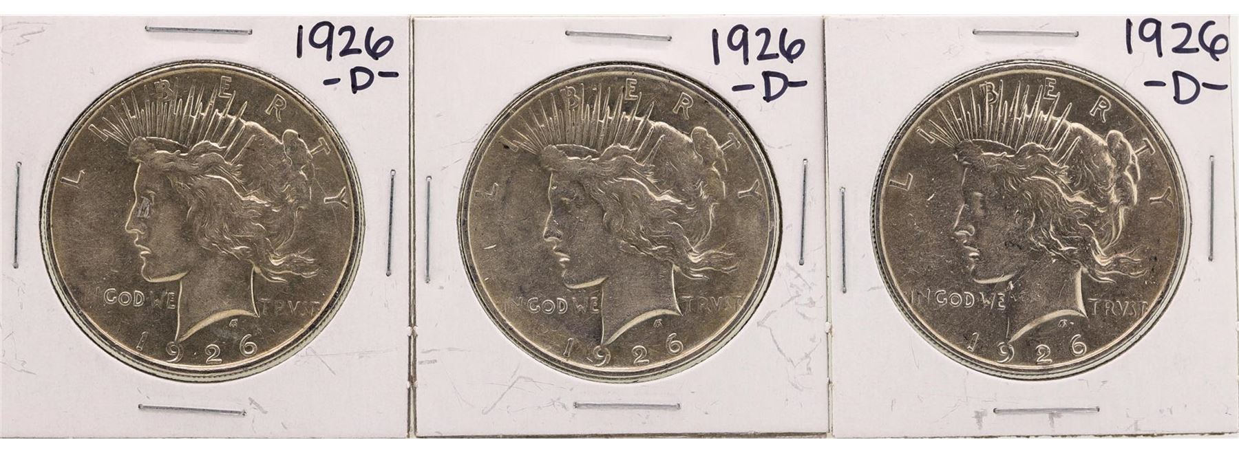 One Lot of (3) 1926-D $1 Peace Silver Dollar Coins.