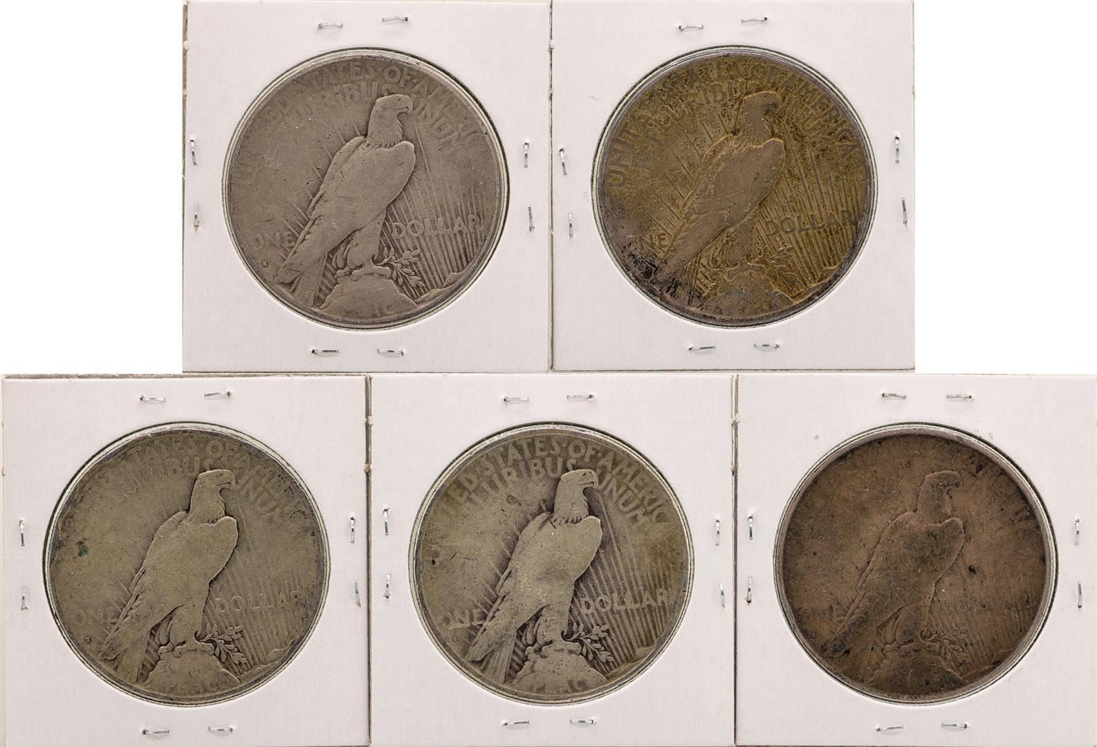 One Lot of (5) 1934-S $1 Peace Silver Dollar Coins.
