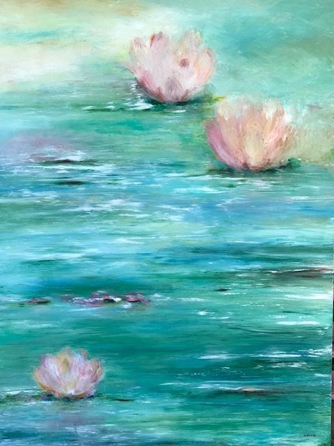 Acrylic / Oil pastel on stretched gallery canvas by Adonna. 30 x 40. Adorn your wall with a sense of peace and calmness, inspired by the gardens of Monet.