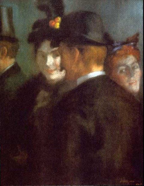 Artist: Louis Anquetin - Title: Au Foyer du Theatre - Medium: Fine Art Reproduction Giclee on Canvas - Image Size: Approximately 20 inches x 16 inches - Unframed on Unstretched Canvas - Biography: Louis Anquetin was regarded as the most promising artist of the 19th century and he was a major influence on other artists of his time and later generations. In Paris, he was a part of a group of artists that included stalwarts like Vincent van Gough, Paul Gauguin, Henri de Toulouse-Lautrec, Emile Bernard and George Seurat. His early work was heavily influenced by 'Impressionism' but later, along with Bernard, developed a new method of painting called 'Cloisonnisme' that quickly gained him the reputation of an innovator in the Paris art scene.