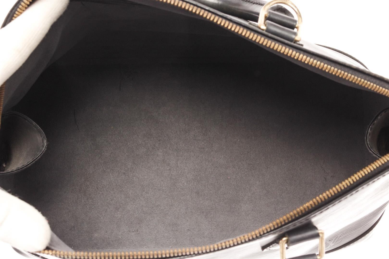 Louis Vuitton Alma PM Tote. Brand: Louis Vuitton, Style: Alma PM, Type: Tote, Exterior color: Black Epi, Exterior material: Leather, Interior color: Grey, Interior material: Suede, Length: 12, Width: 6.5, Height: 9. Item is sold AS-IS and all information