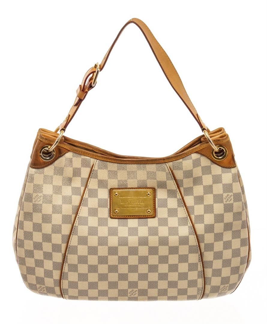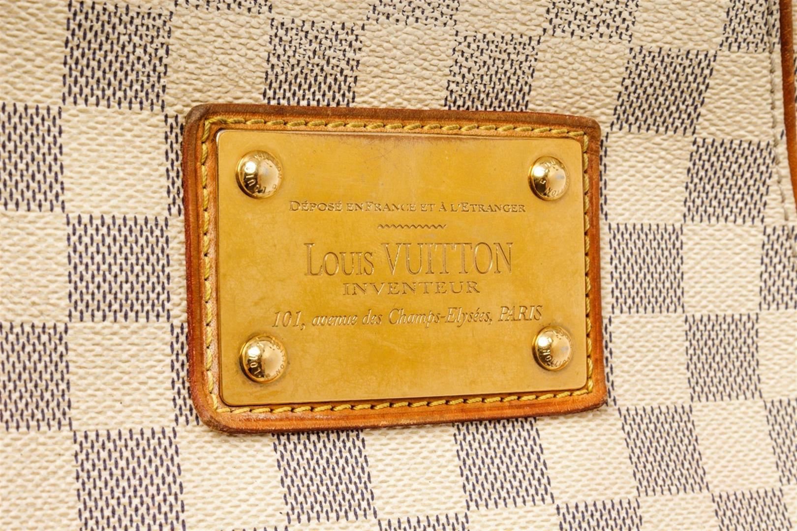 Louis Vuitton Beige Damier Azur Galliera PM Hobo Bag. All available information is listed in the description and shown in the photos. Louis Vuitton Beige Damier Azur Galliera PM Hobo Bag with neutrals coated canvas, damier azur pattern, brass hardware, leather trim, single adjustable shoulder strap, alcantara lining & dual interior pockets, protective feet at base, includes dust bag, snap closure at front. Height: 11" Width: 18" Depth: 4.5", Shoulder Strap Drop: 7.75" / 27.94 x 45.72 x 11.43 Cm