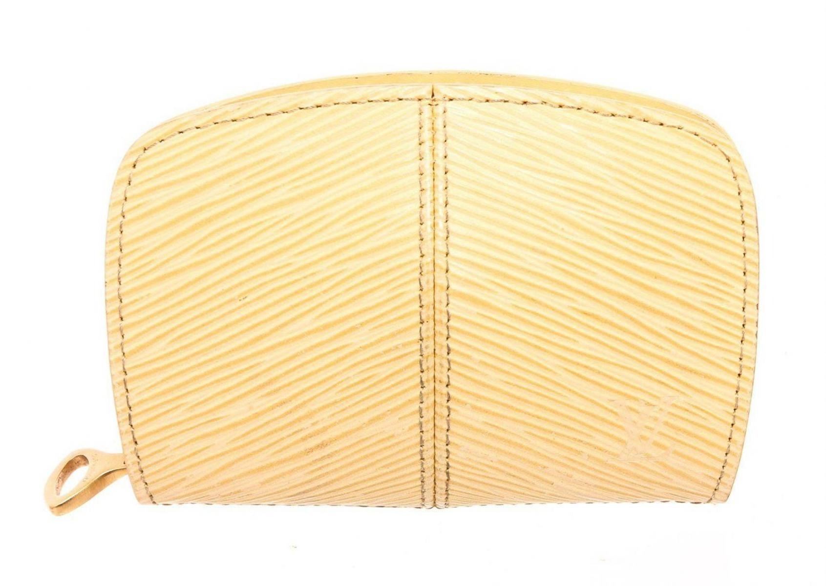 Louis Vuitton beige mini Dauphine case with gold-tone hardware, embossed logo at front face, tan leather interior lining and overall zip closure. Measurements: Length: 4.9 in / 12 cm Width: 0.6 in / 2 cm 2.95 in / 7 cmCONDITION: Pre-Owned Good overall, please see photographs for detail.