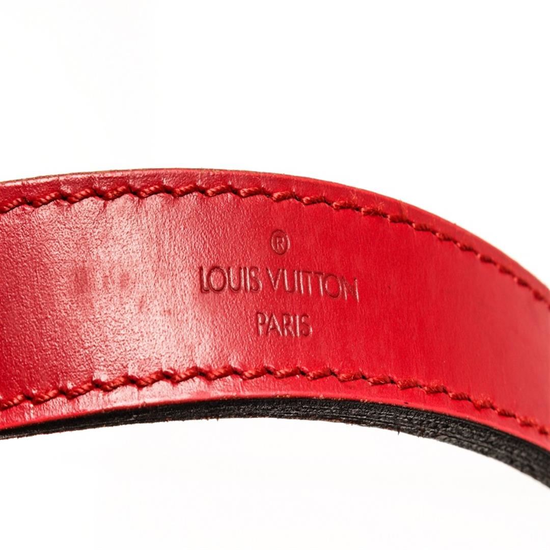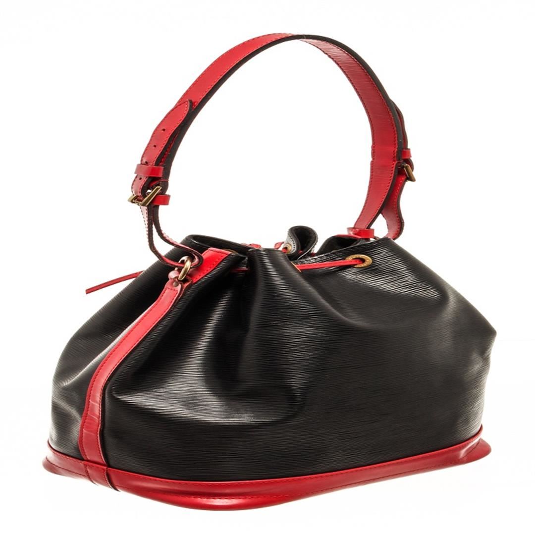 One Louis Vuitton Black And Red Epi Leather Noe Shoulder Bag. Item is sold AS-IS. All available information is listed in the description and shown in the photo. Louis Vuitton black and red epi leather Noe shoulder bag with this vintage 1991 features a bicolor epi leather body, an adjustable shoulder strap, and a top red leather drawstring closure and interior zipper pocket. Such a great color combination bag from the 90s. Leather is peeling on strap where date code is and the hardware is tarnished. Please refer to photos. Height: 10.23" Width: 13.38" Depth: 7.08", Shoulder Drop: 20.07" / 26 x 34 x 18 Cm
