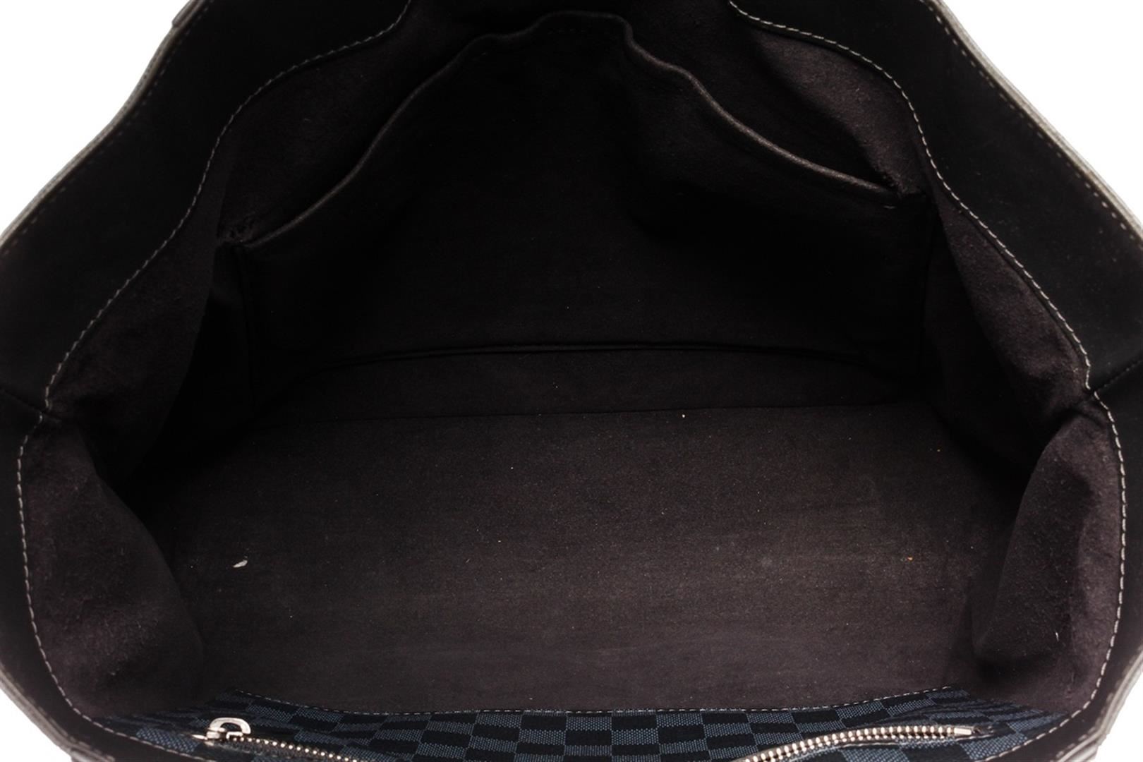 Louis Vuitton Black Damier Cobalt Voyage Tote Bag. All available information is listed in the description and shown in the photos. louis vuitton black damier cobalt voyage tote bag with exterior material: canvas (coated), exterior color: blue, interior material: microfiber, interior color: black, hardware color: silver Height 13", Width 14.5", Depth 4.5", Shoulder Strap Drop: 9" / 33.02 x 36.83 x 11.43 Cm