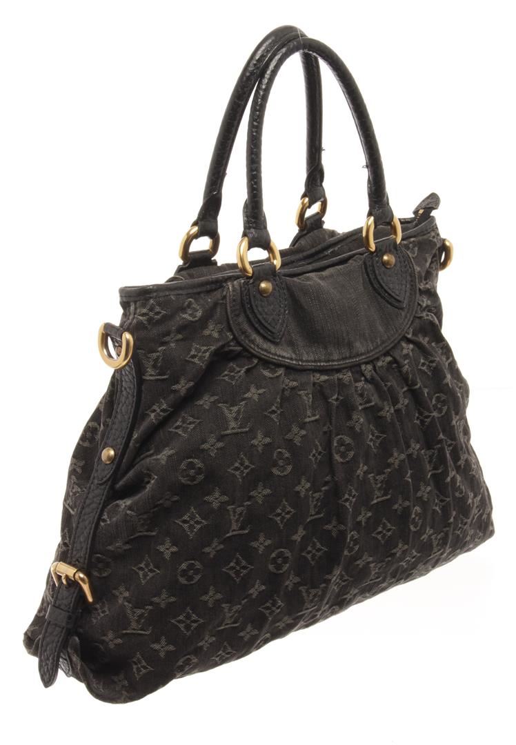 Louis Vuitton Black Denim Neo Cabby MM Shoulder Bag. All available information is listed in the description and shown in the photos. black louis vuitton denim neo cabby mm bag. the neo cabby mm with monogram denim body, rolled leather handles, a detachable and adjustable flat leather strap, a top zip closure, and an interior slip pocket. 12.6" L x 16.5" W x 4.9" D, 5.5" drop