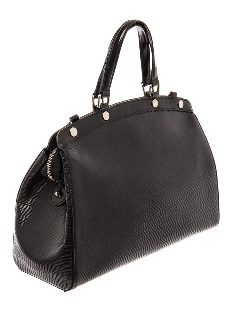 Louis Vuitton Black Epi Leather Electric Brea MM Satchel Bag. All available information is listed in the description and shown in the photos. Louis Vuitton Black Epi Leather Electric Brea MM Satchel Bag, silver-tone hardware, flat handles & single adjustable shoulder strap, canvas lining & three interior pockets, zip closure at top, protective feet at base. Condition Details: Some surface scratches, tarnishing on protective feet, minor wear on handles. Height: 9.5" Width: 13.25" Depth: 5", Handle Drop: 4.5", Shoulder Strap Drop: 16" / 24.13 x 33.65 x 12.7 Cm