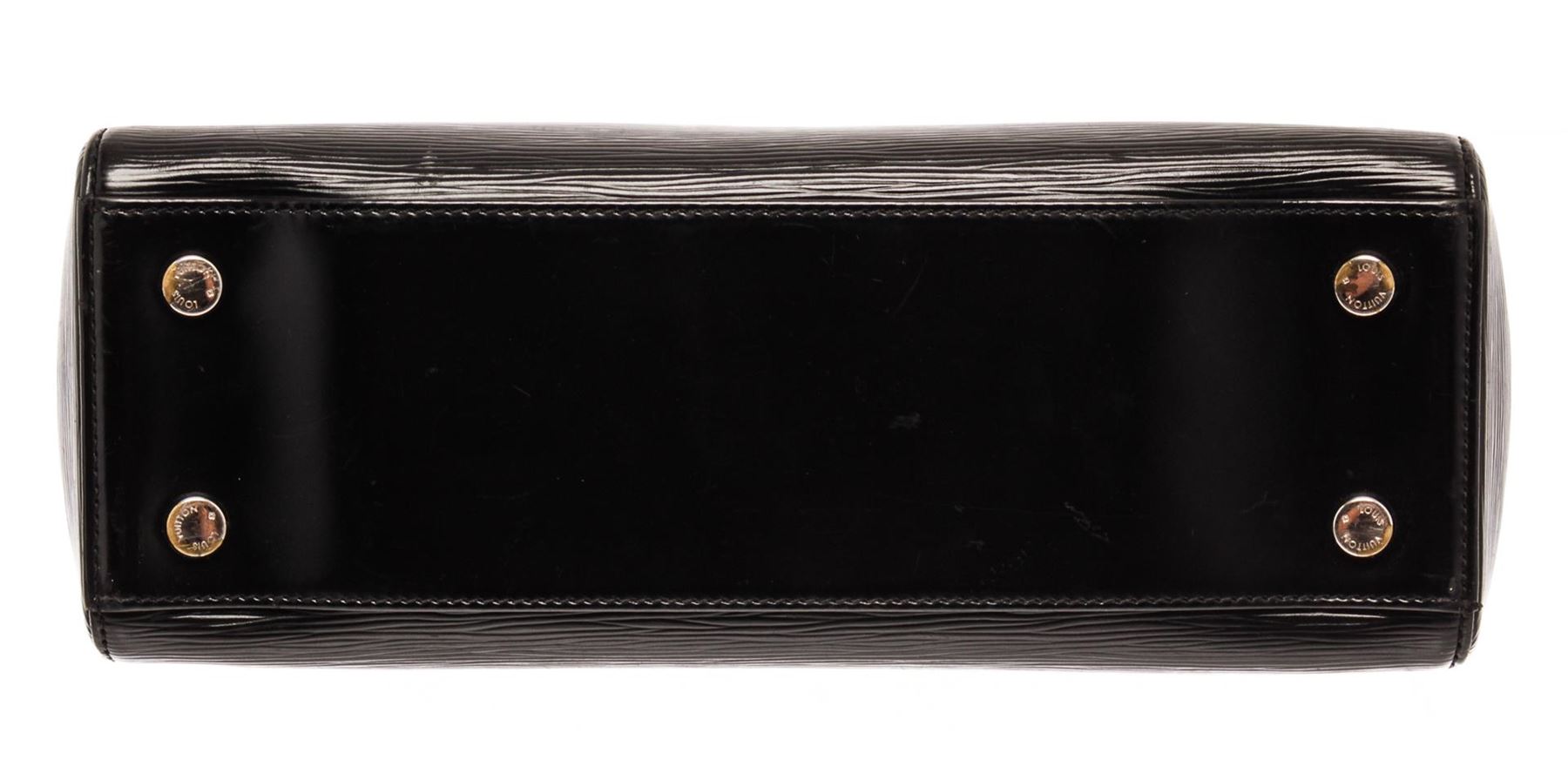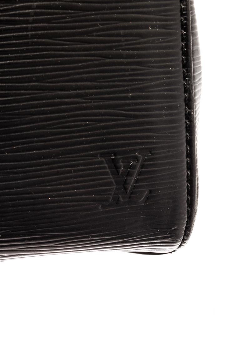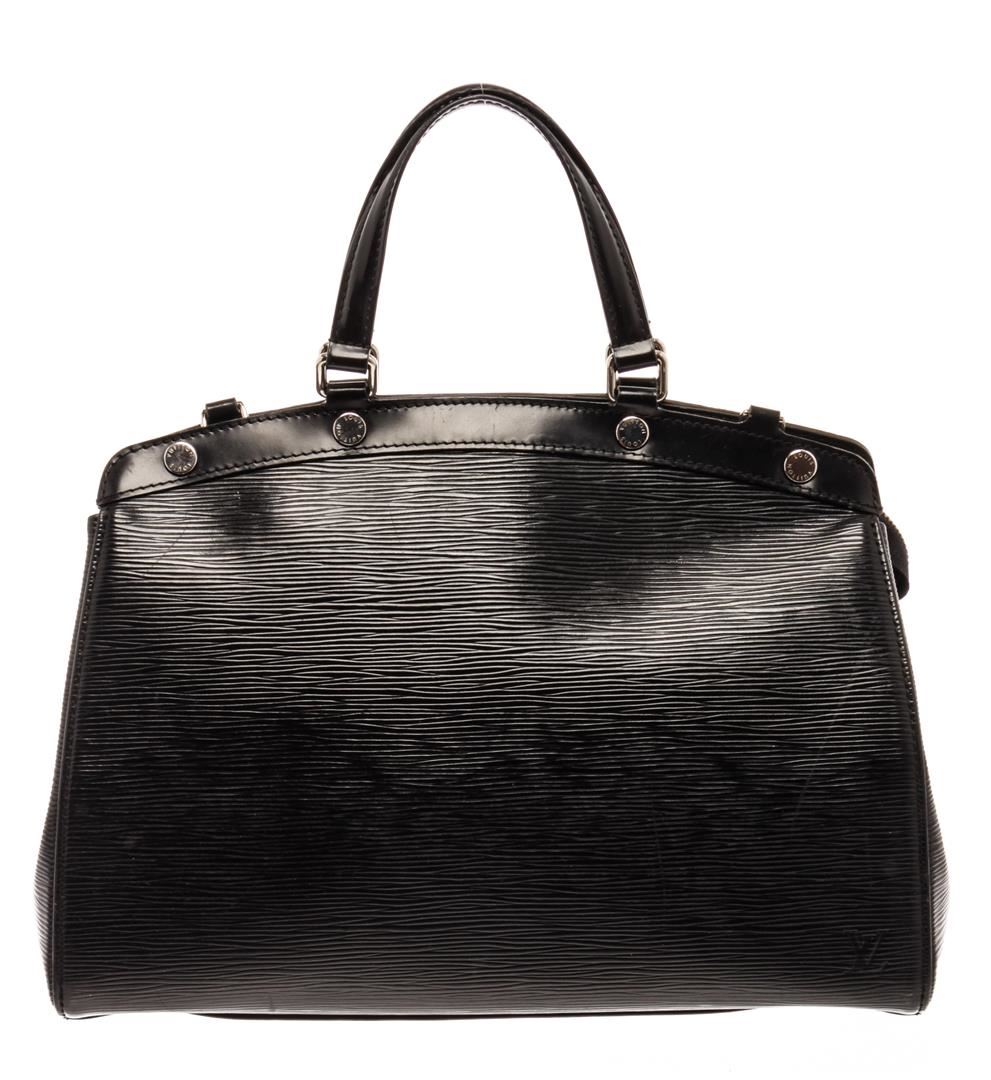 Louis Vuitton Black Epi Leather Electric Brea MM Satchel Bag. All available information is listed in the description and shown in the photos. Louis Vuitton Black Epi Leather Electric Brea MM Satchel Bag, silver-tone hardware, flat handles & single adjustable shoulder strap, canvas lining & three interior pockets, zip closure at top, protective feet at base. Condition Details: Some surface scratches, tarnishing on protective feet, minor wear on handles. Height: 9.5" Width: 13.25" Depth: 5", Handle Drop: 4.5", Shoulder Strap Drop: 16" / 24.13 x 33.65 x 12.7 Cm