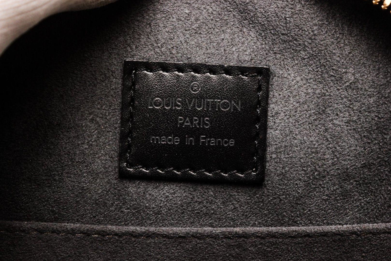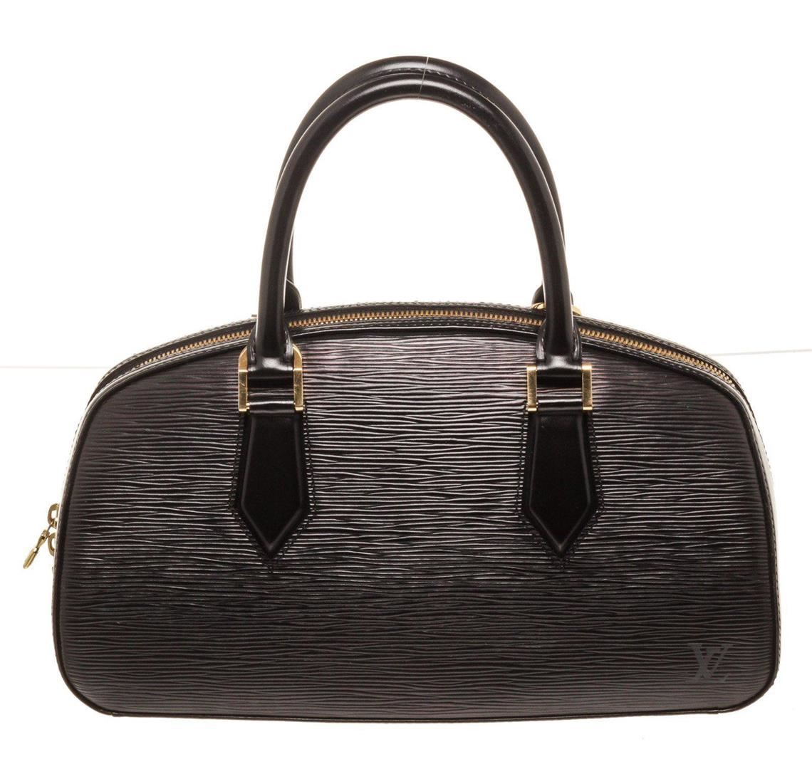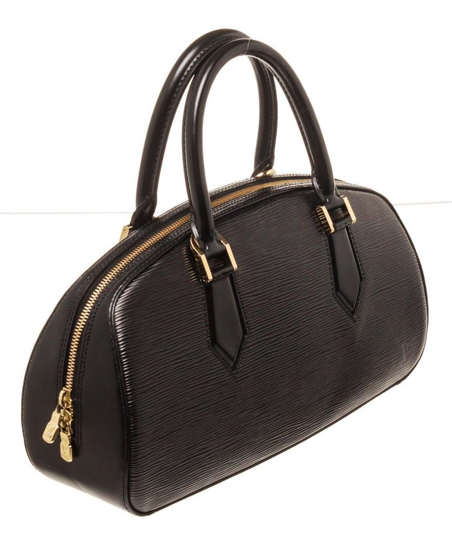 Louis Vuitton Black Epi Leather Jasmin Shoulder Bag with material epi lether, gold-tone hardware, trim tan vachetta leather, interior slip pocket, dual top handle, shoulder strap and zipper closure.