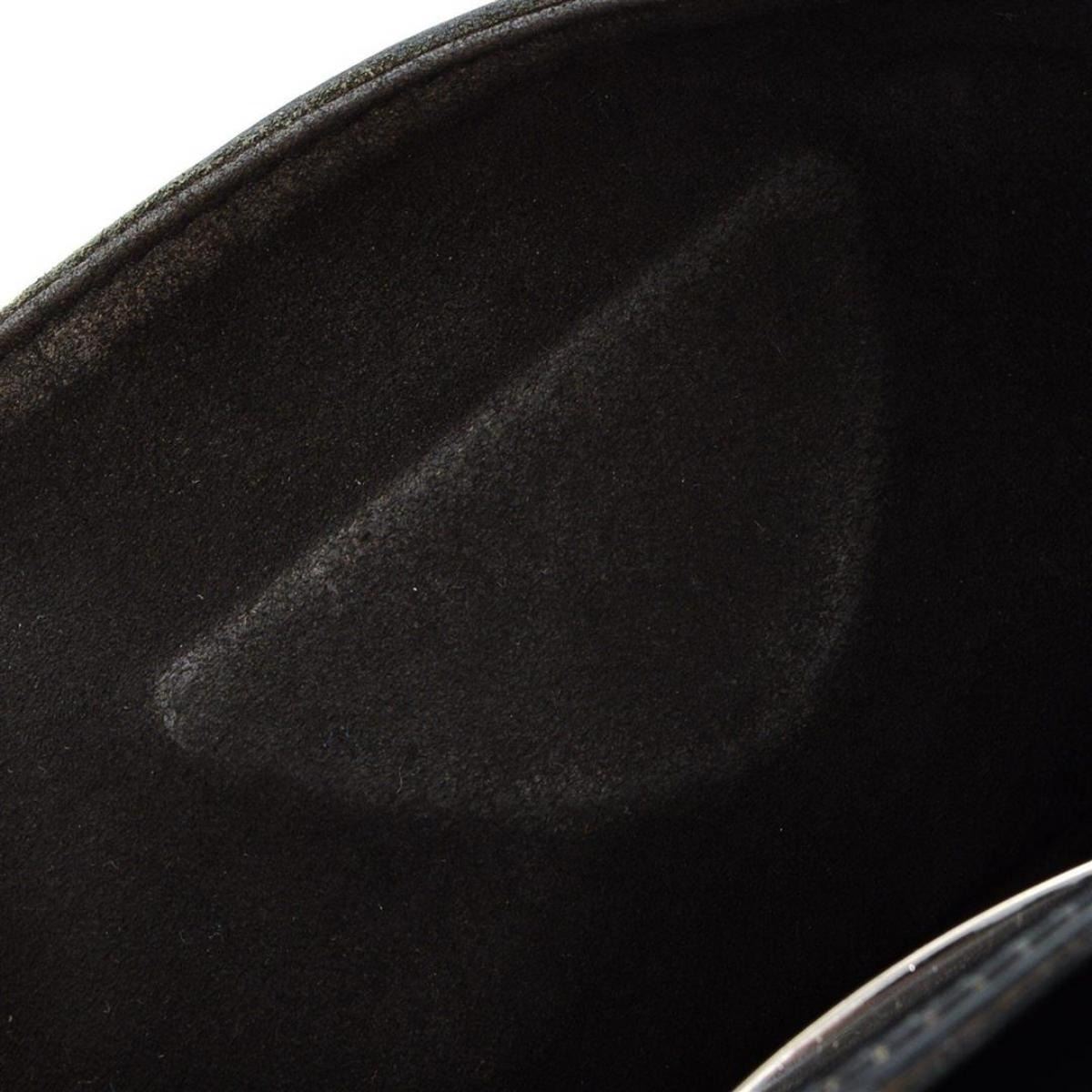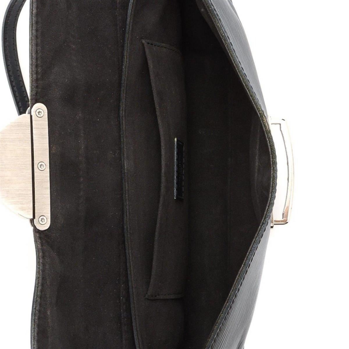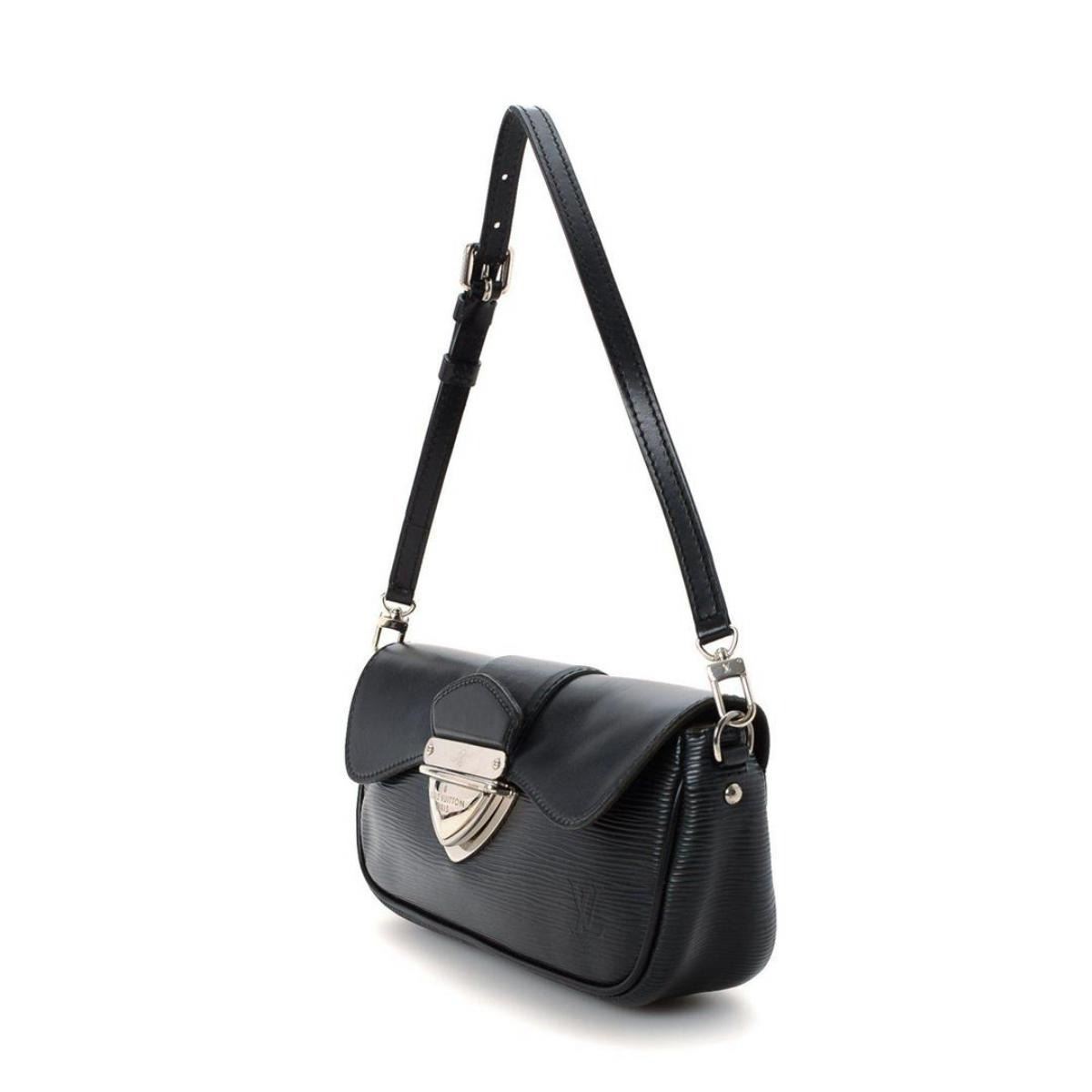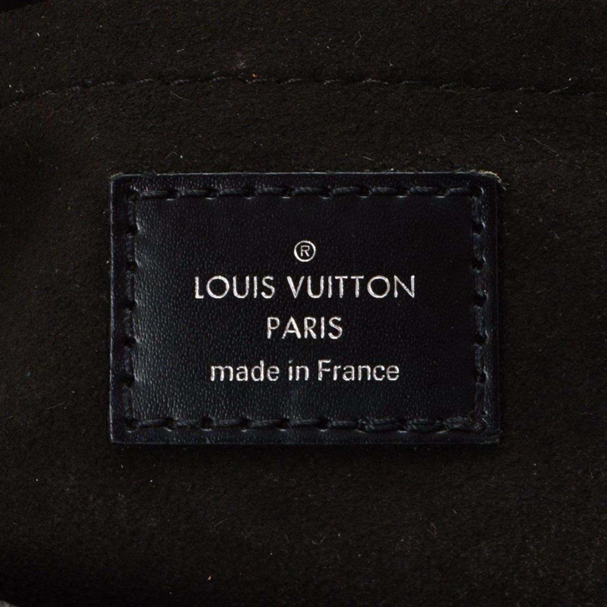 Louis Vuitton Black Epi Leather Pochette Montaigne Shoulder Bag with silver-tone hardware, Alcantara microfiber lining, optional adjustable shoulder strap, flap with snap closure.