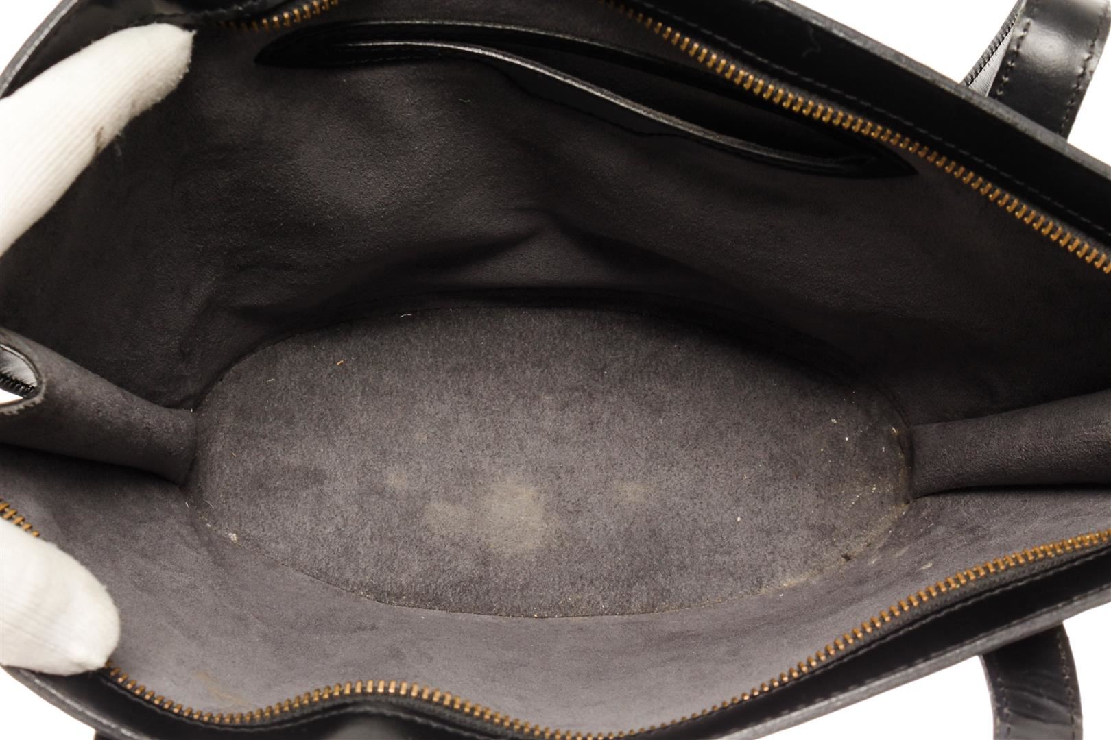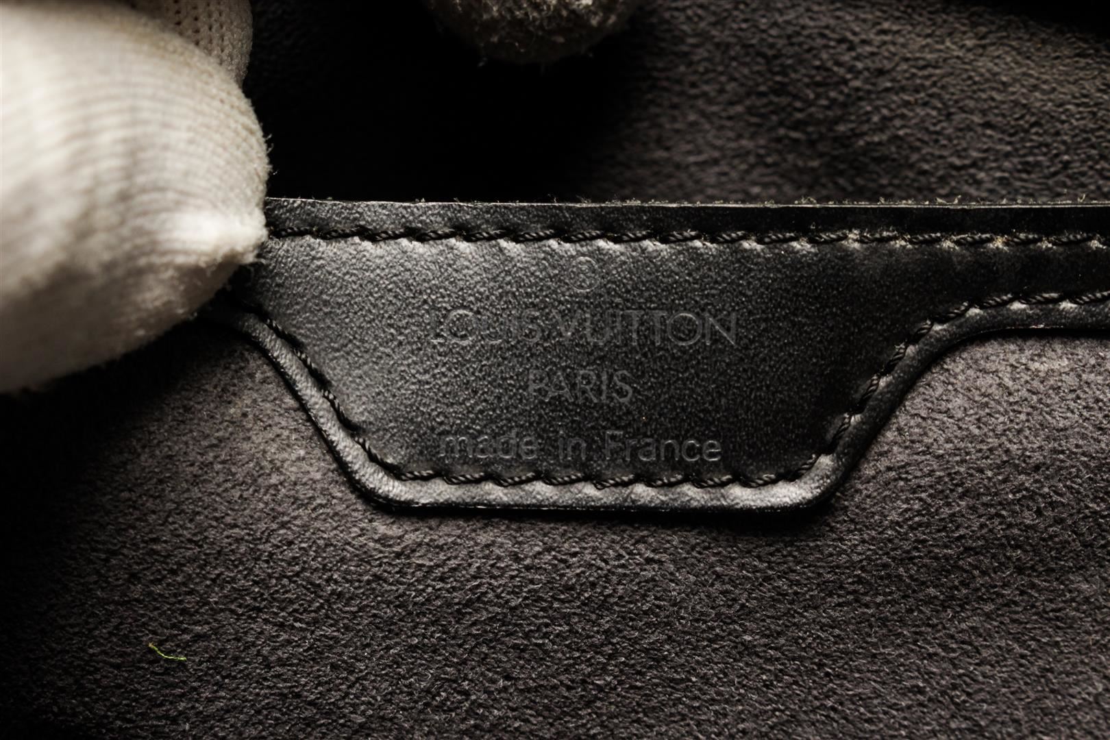 One Louis Vuitton Black Epi Leather St. Jacques PM Shoulder Bag. Item is sold AS-IS. All available information is listed in the description and shown in the photo. Louis Vuitton Black Epi Leather St. Jacques PM Shoulder Bag with gold-tone hardware, black leather trim, grey alcantara lining, interior slip pocket, dual flat leather handles in black, and zip closure at the top. .