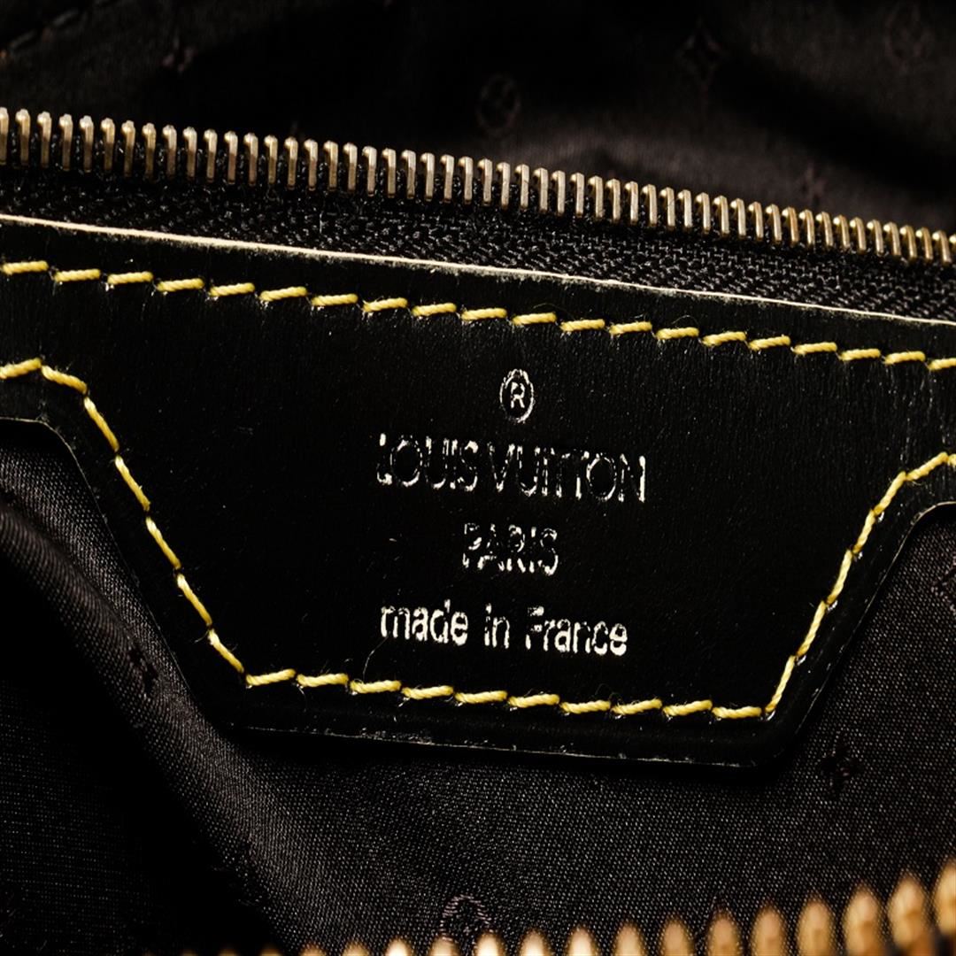 One Louis Vuitton Black Leather Lockit PM Tote Bag. Item is sold AS-IS. All available information is listed in the description and shown in the photo. Louis Vuitton black leather Lockit PM tote bag with leather exterior, black fabric lining, contrasting yellow stitching, gold-tone hardware, interior slip pocket, dual top handle, and zipper closure.
