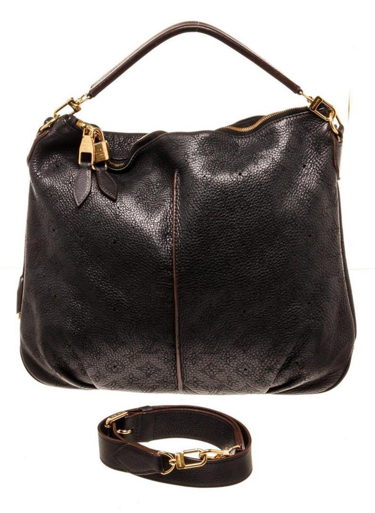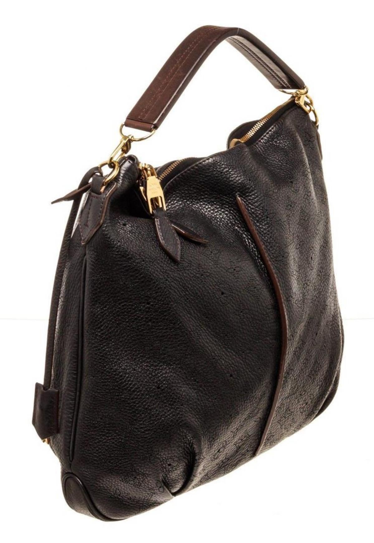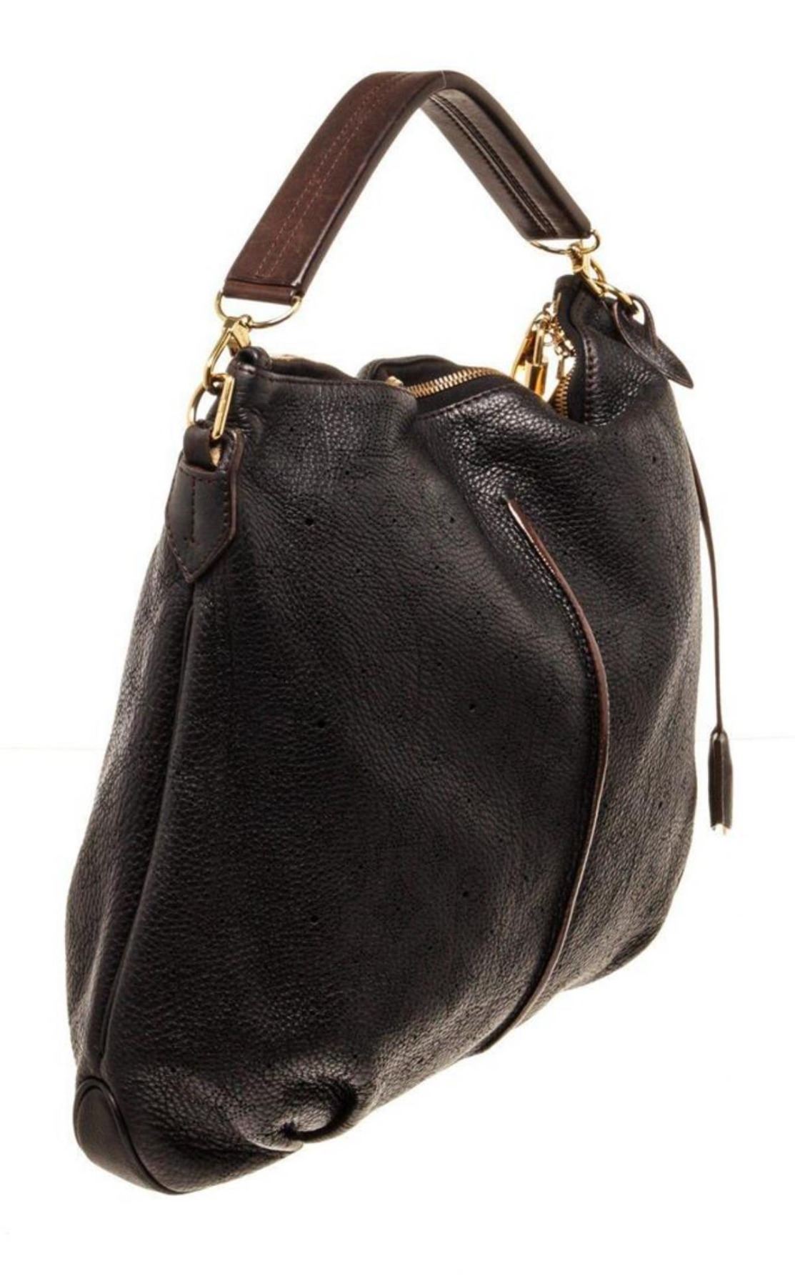 Louis Vuitton Black Leather Selene MM Hobo Bag with material leather, gold-tone hardware, trim tan vachetta leather, interior three compartment pocket, shoulder strap and zipper closure.